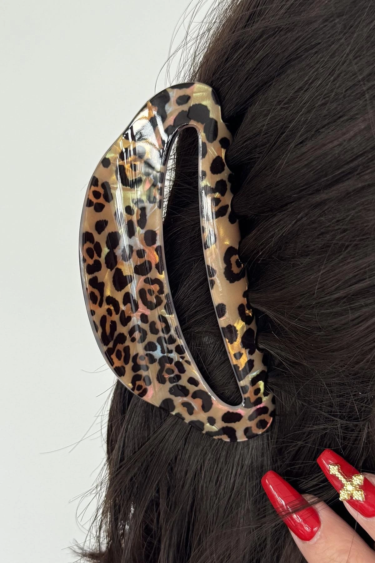 Karışık Renk Leopar Desenli Kemik Mandal Toka