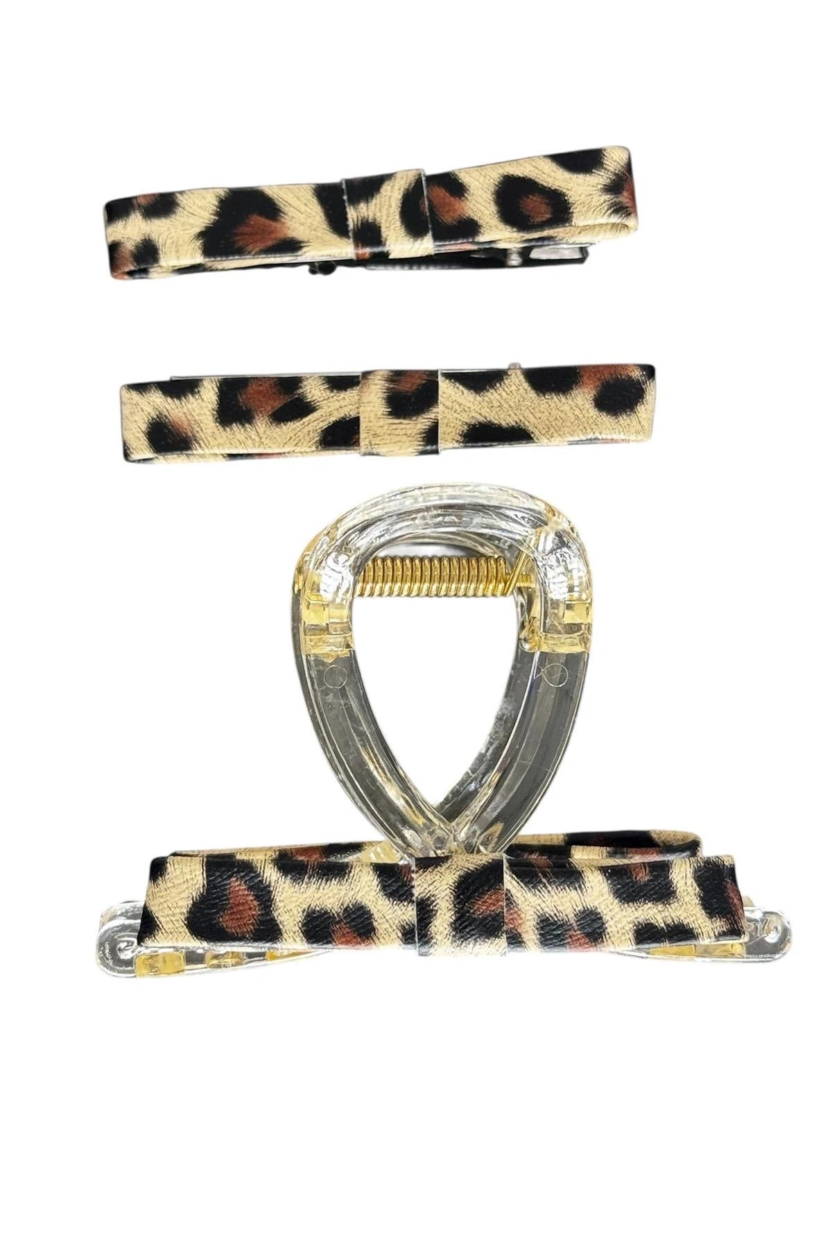 Karışık Renk Leopar Desenli Mandal Toka Ve Yan Toka Set