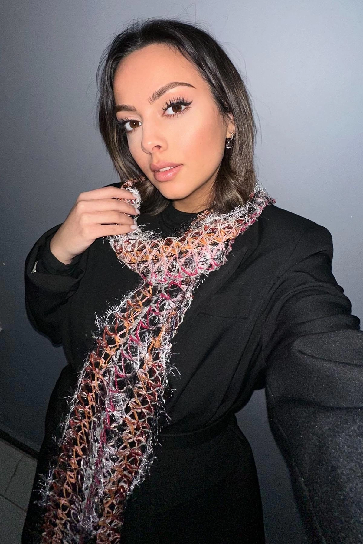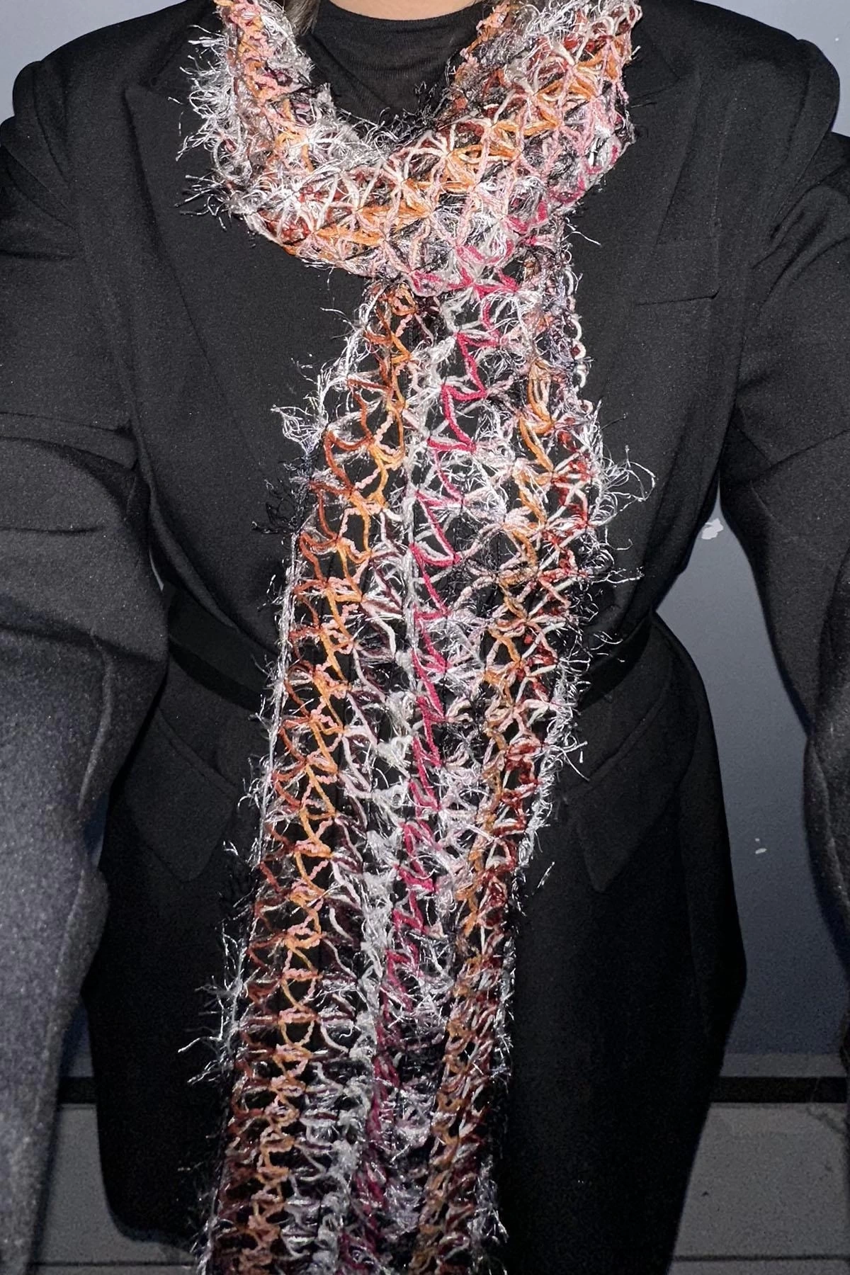 Karışık Renk Örgü Detaylı Şal