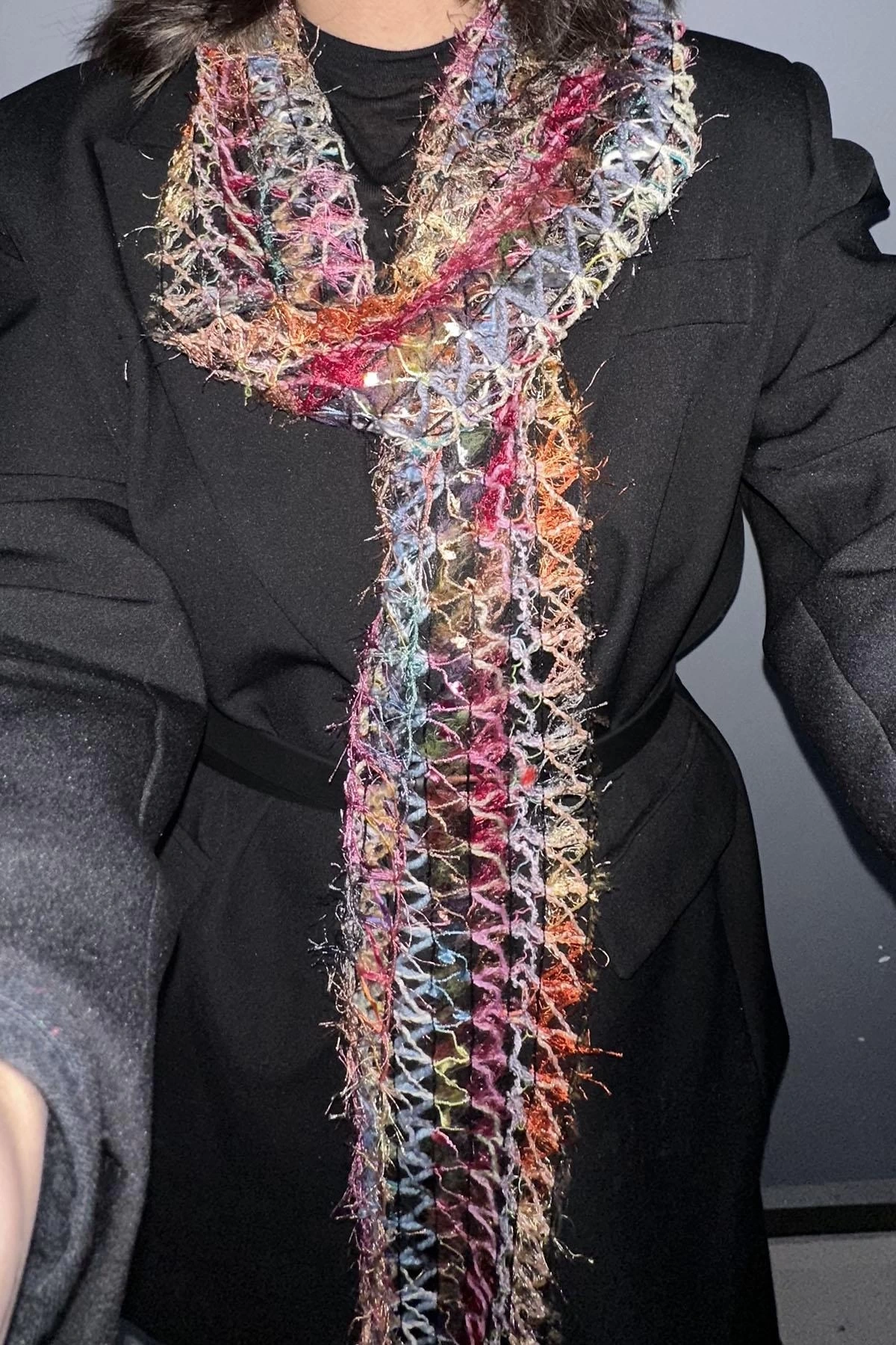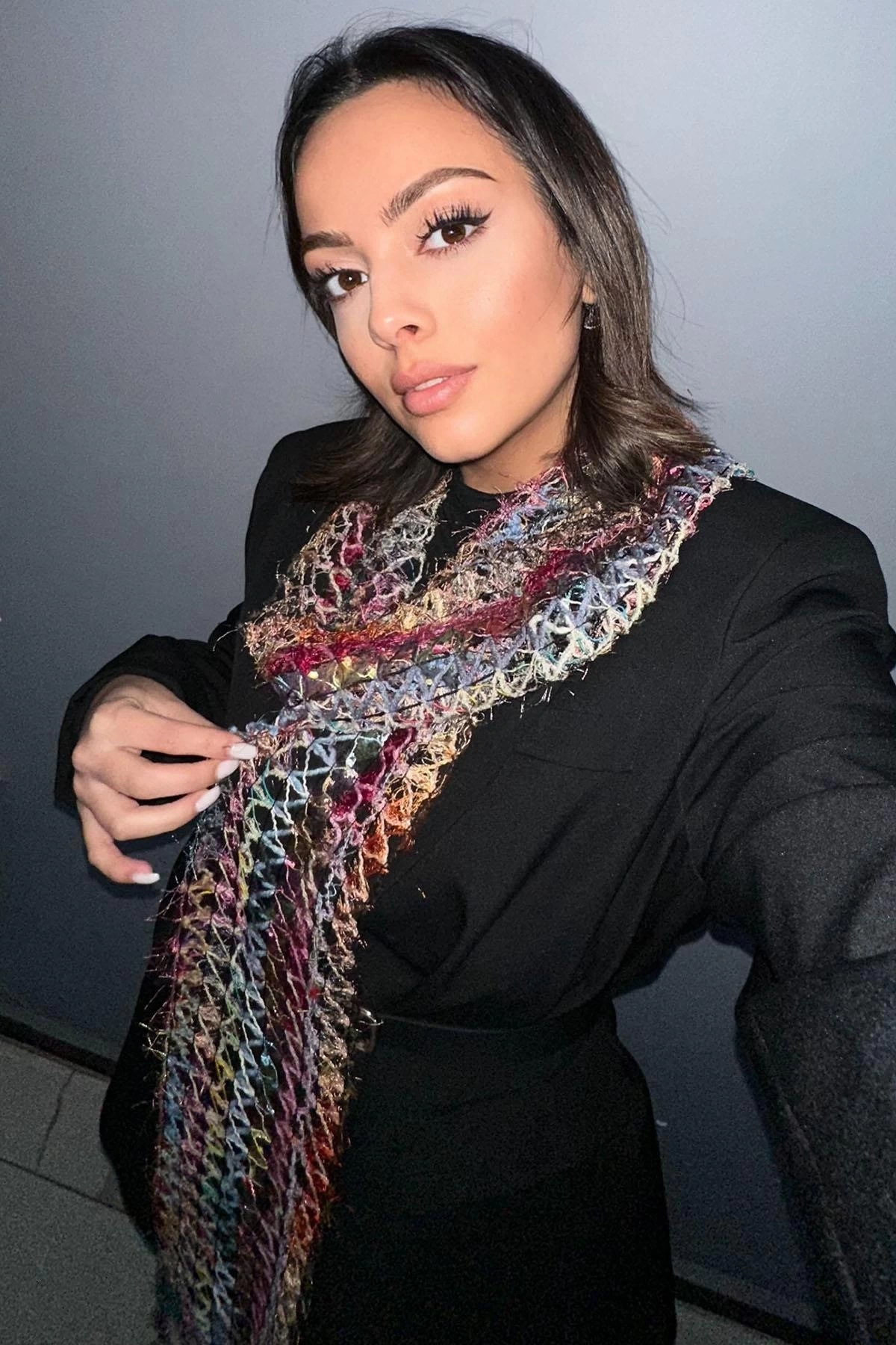Karışık Renk Örgü Detaylı Şal