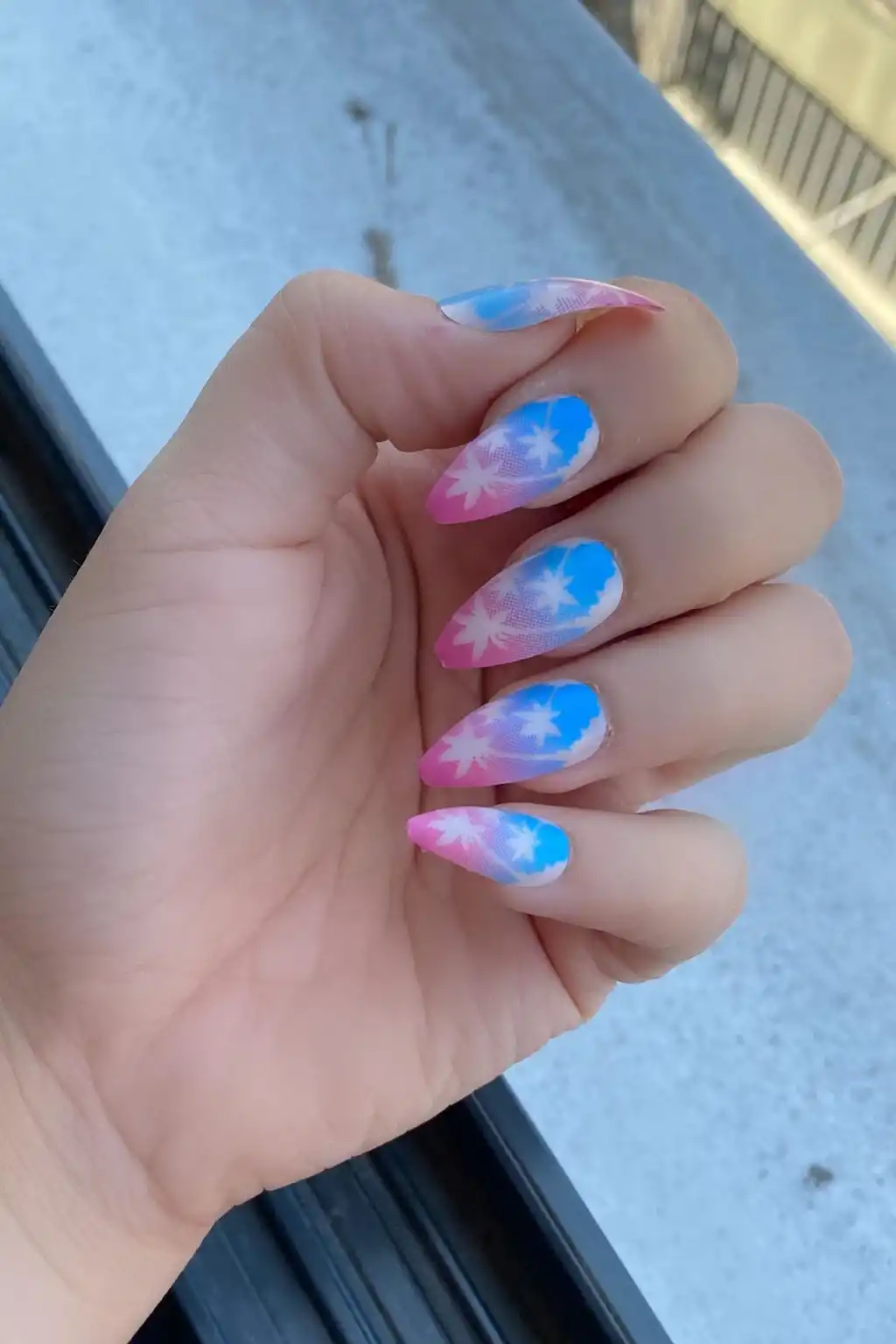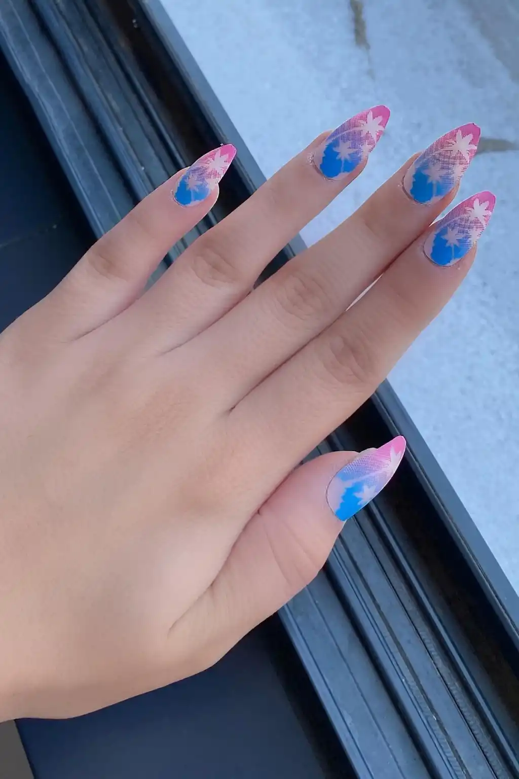 Karışık Renk Palmiye Figürlü 12'li Takma Takma Tırnak (Yapıştırıcılı)