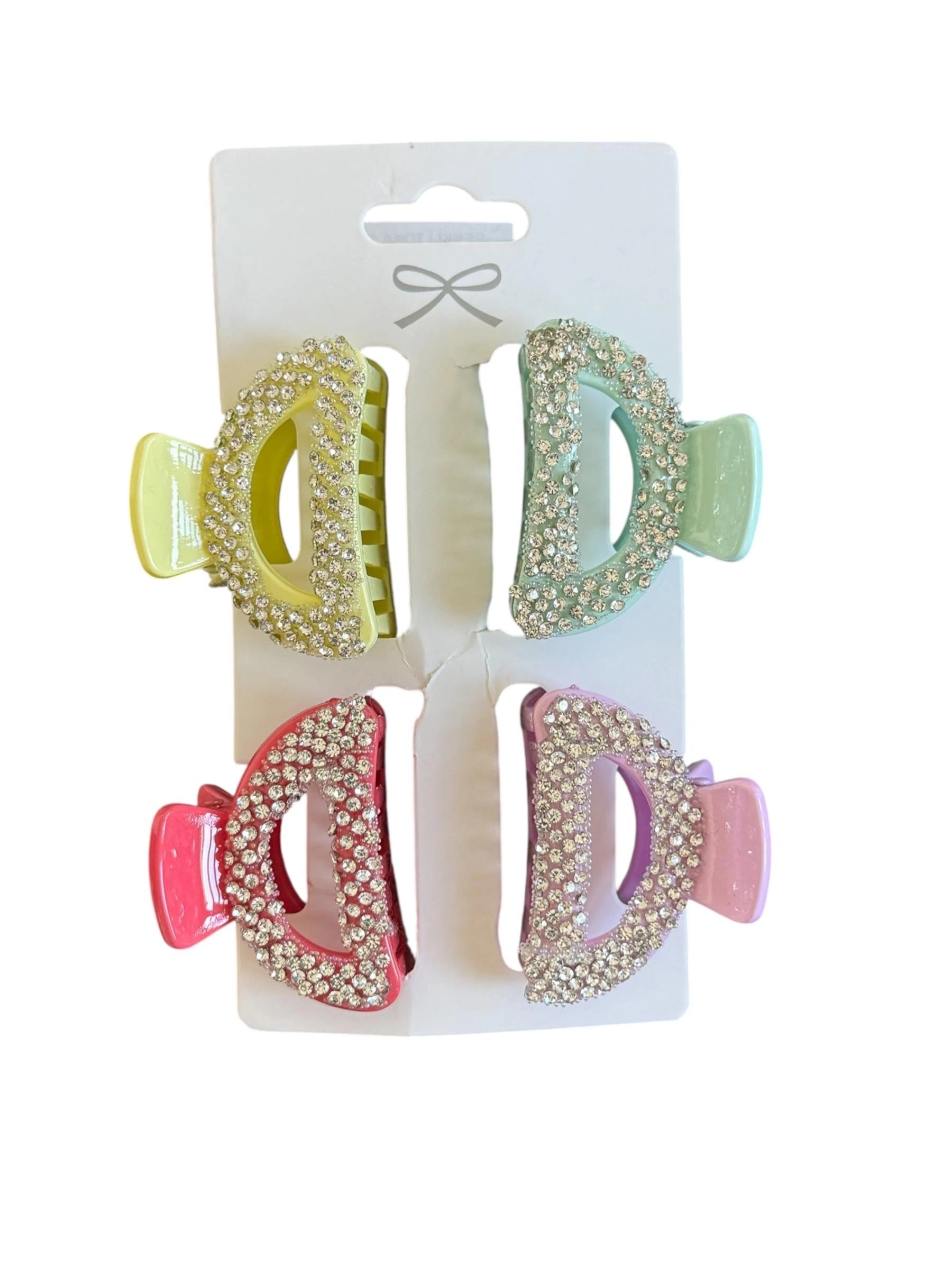 Karışık Renk Taş Detaylı 4'lü Mini Mandal Toka Set