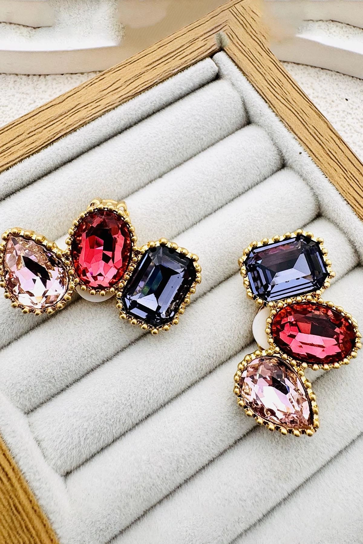 Karışık Renk Taş Detaylı Küpe (Çift)