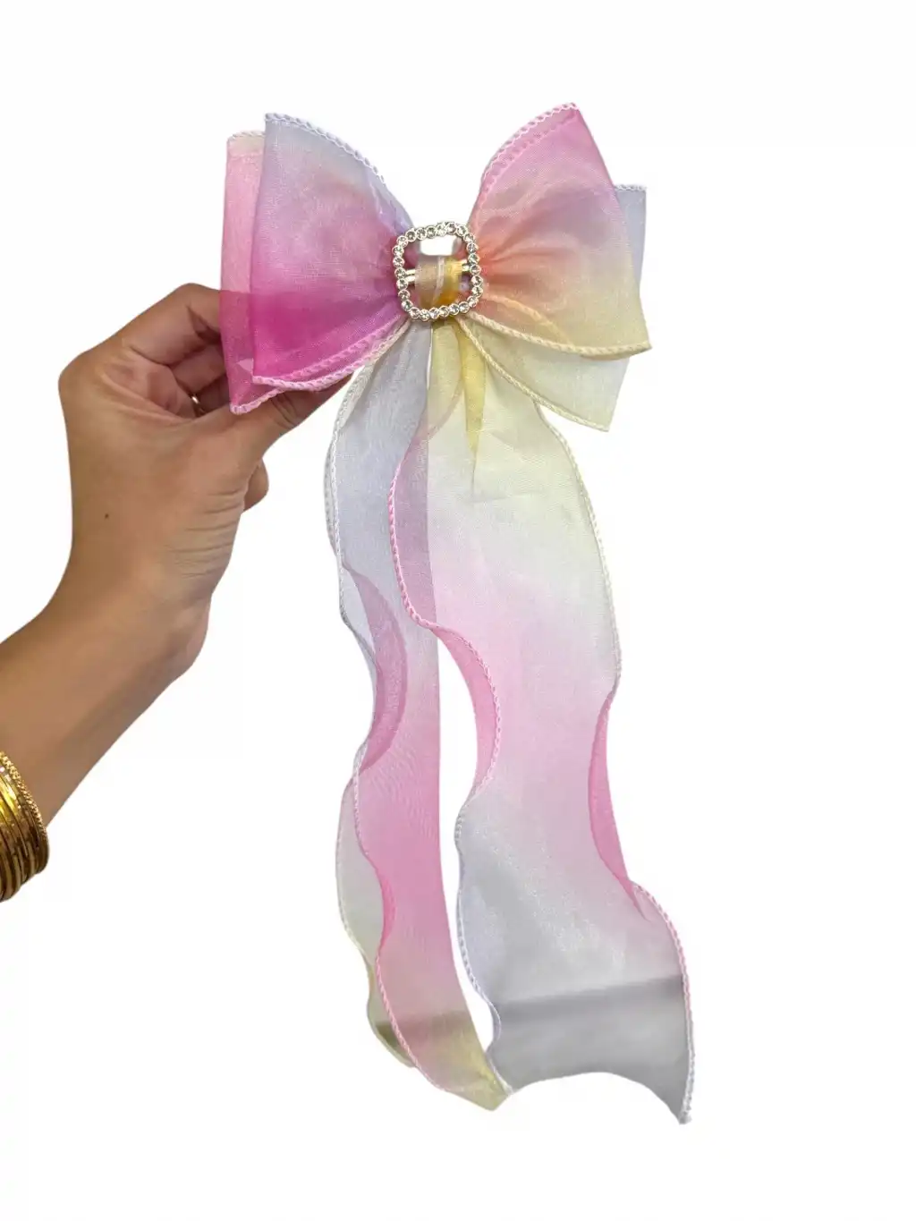 Beyaz Ve Pembe Renk Kurdele Figürlü Taş Detaylı Otomat Toka