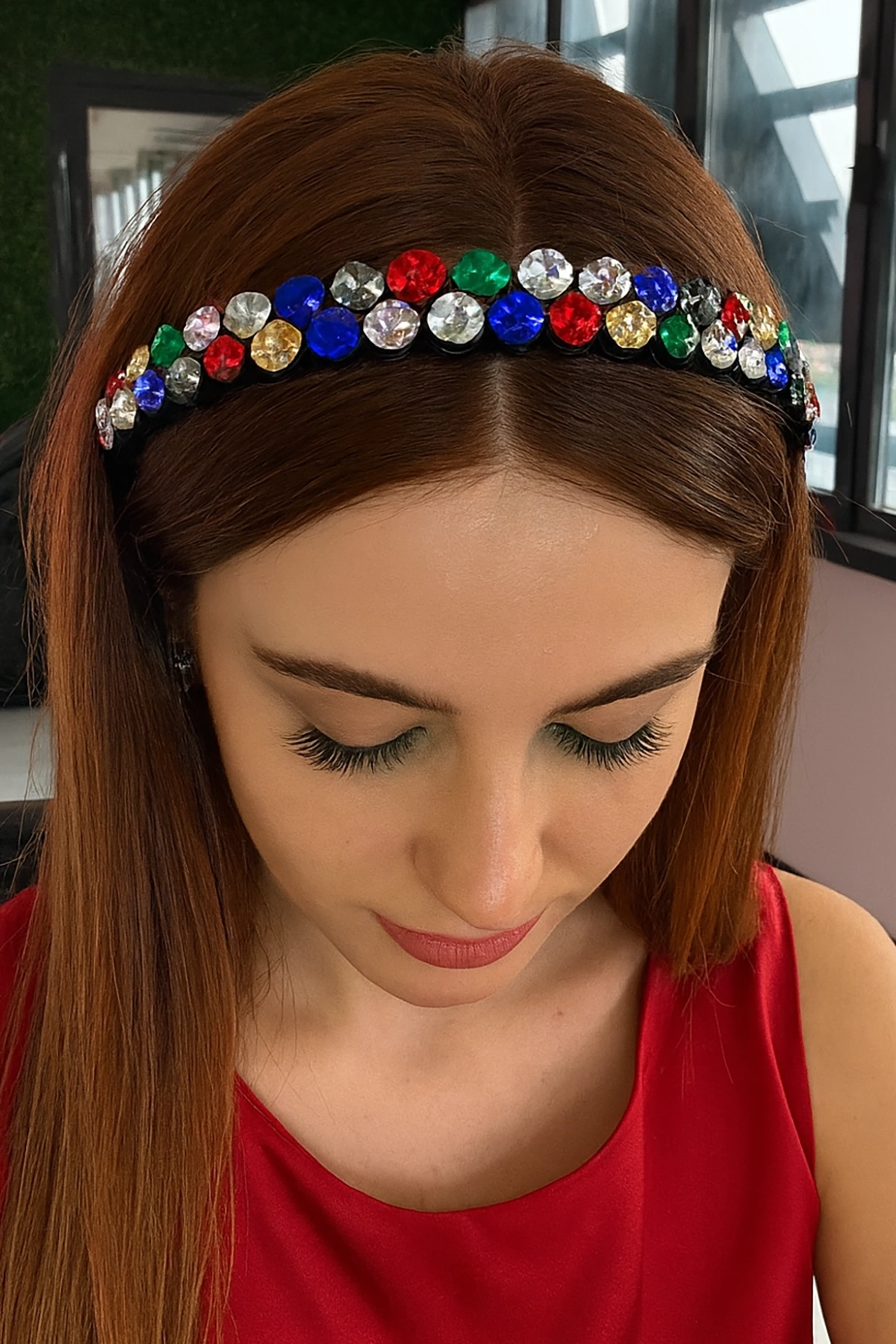 Karışık Renk Taş Detaylı Tasarım Taç