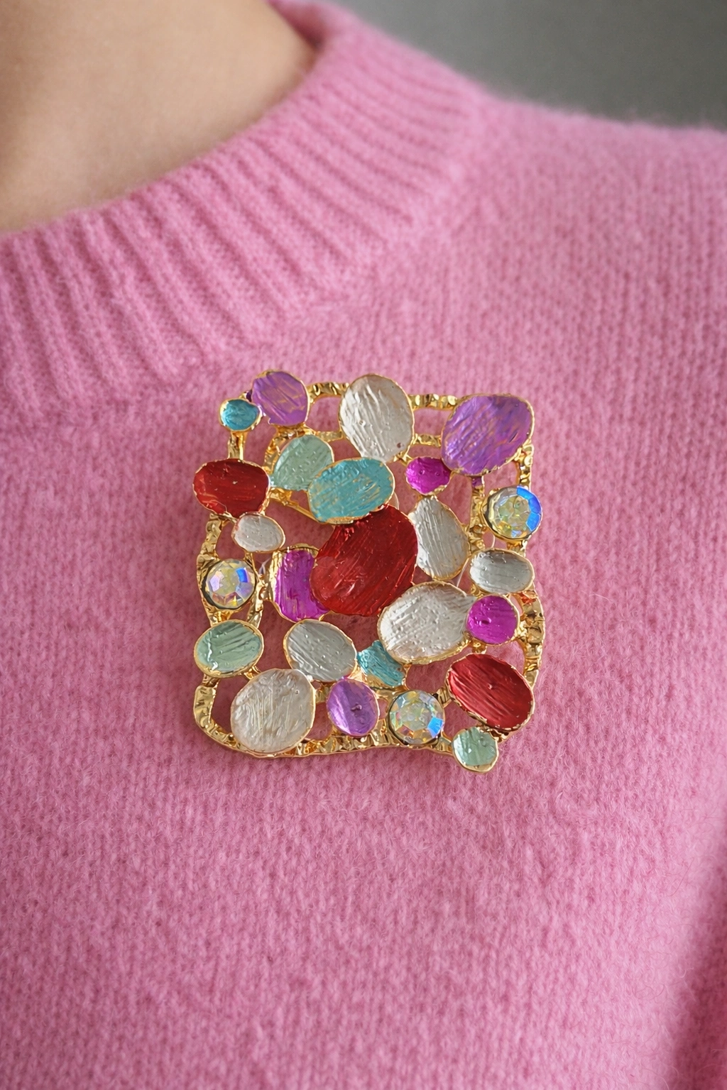 Karışık Renk Taşlı Broş