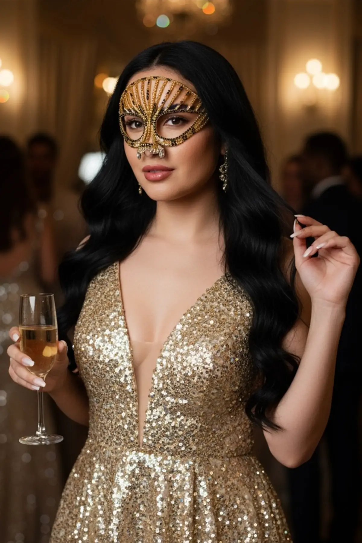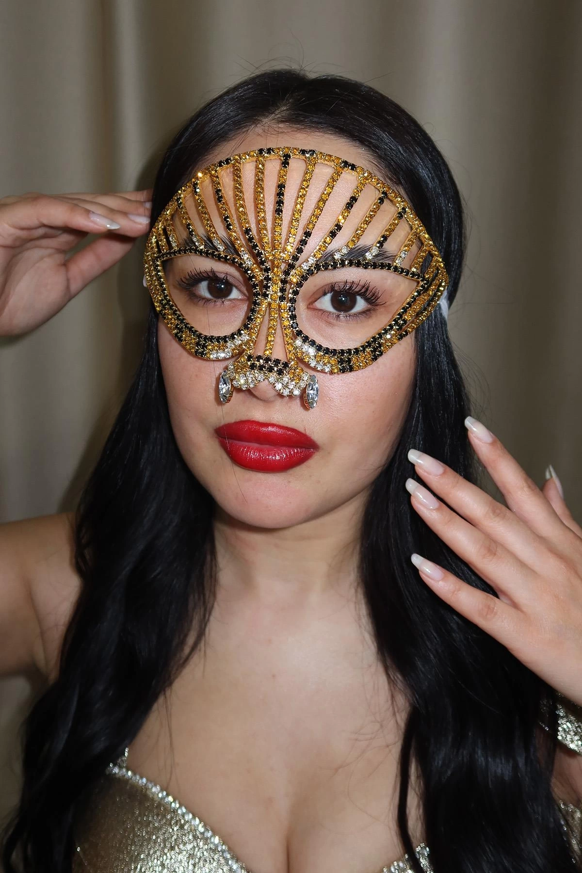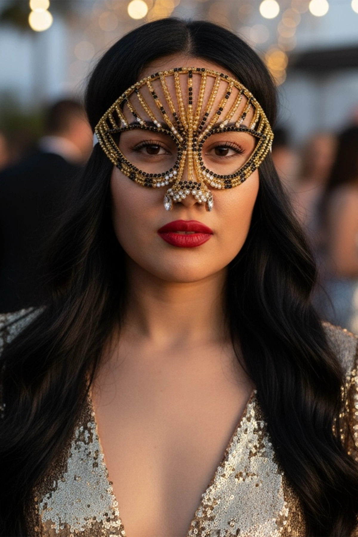 Bu taşlı yüz party maskesi, parti gecelerinde parıltınızı ve çekiciliğinizi artırmak için tasarlanmıştır. Zarif taş detayları ile süslenmiş olan bu maskenin altındaki yüzünüz, partinin en göz alıcı görüneni olacak.