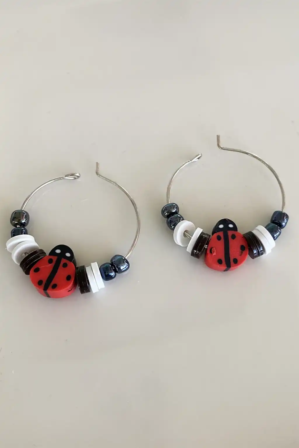 Karışık Renk Uğur Böceği Fimo Halka Küpe (Çift)