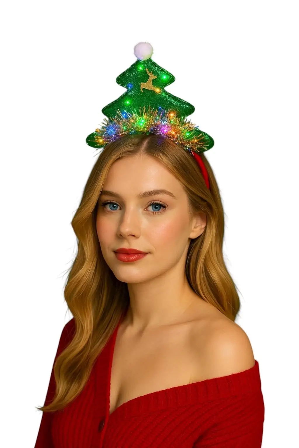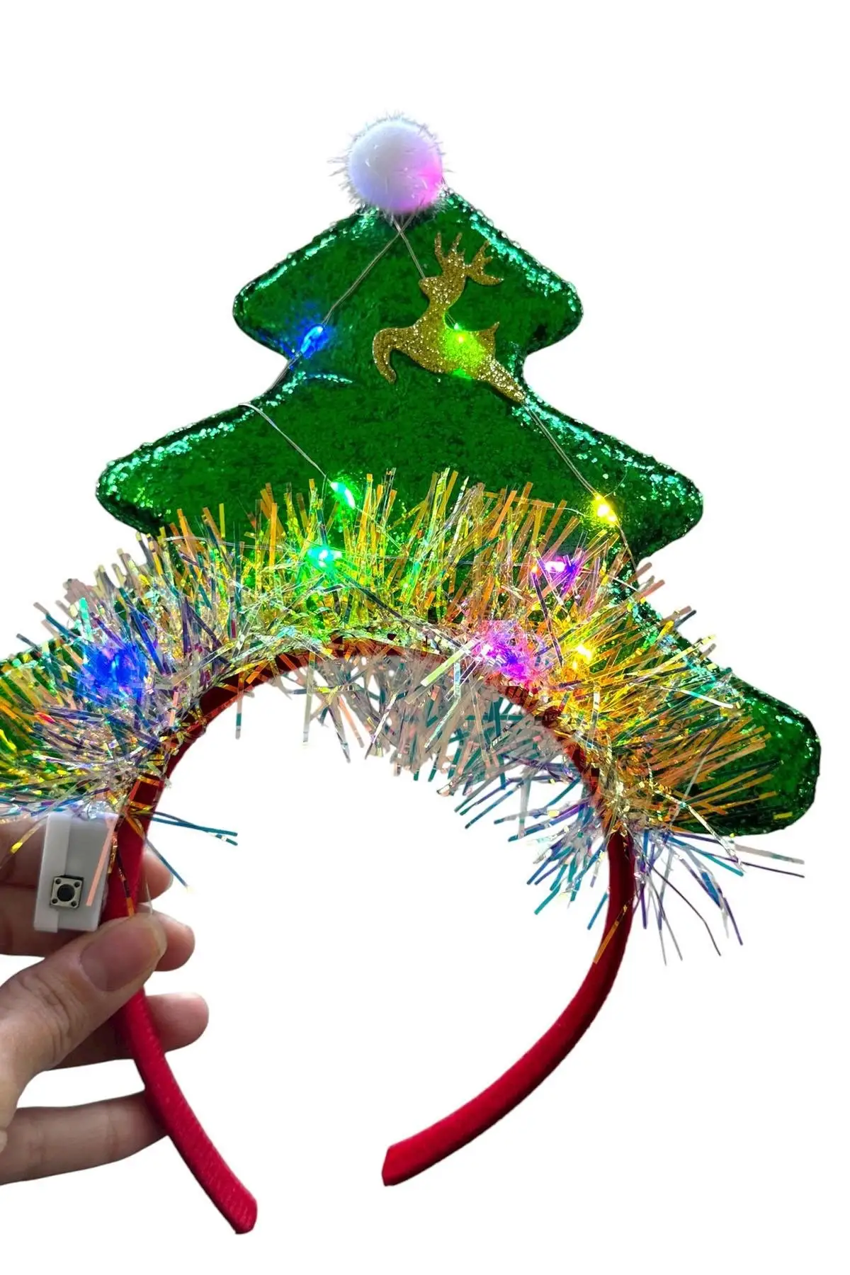 Karışık Renk Yılbaşı Ağacı Figürlü Işıklı Taç