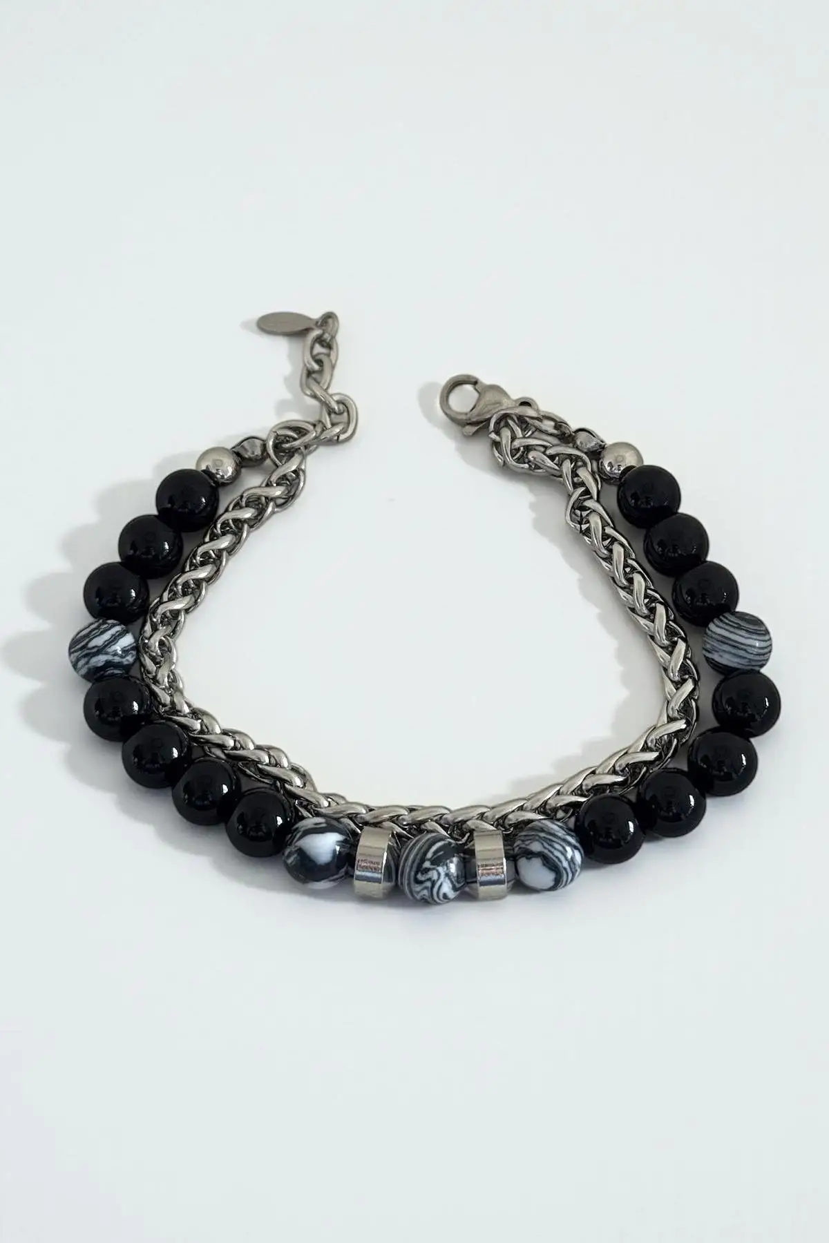 Karışık Renk Zincir Ve Boncuk Detaylı Çelik Erkek Bileklik