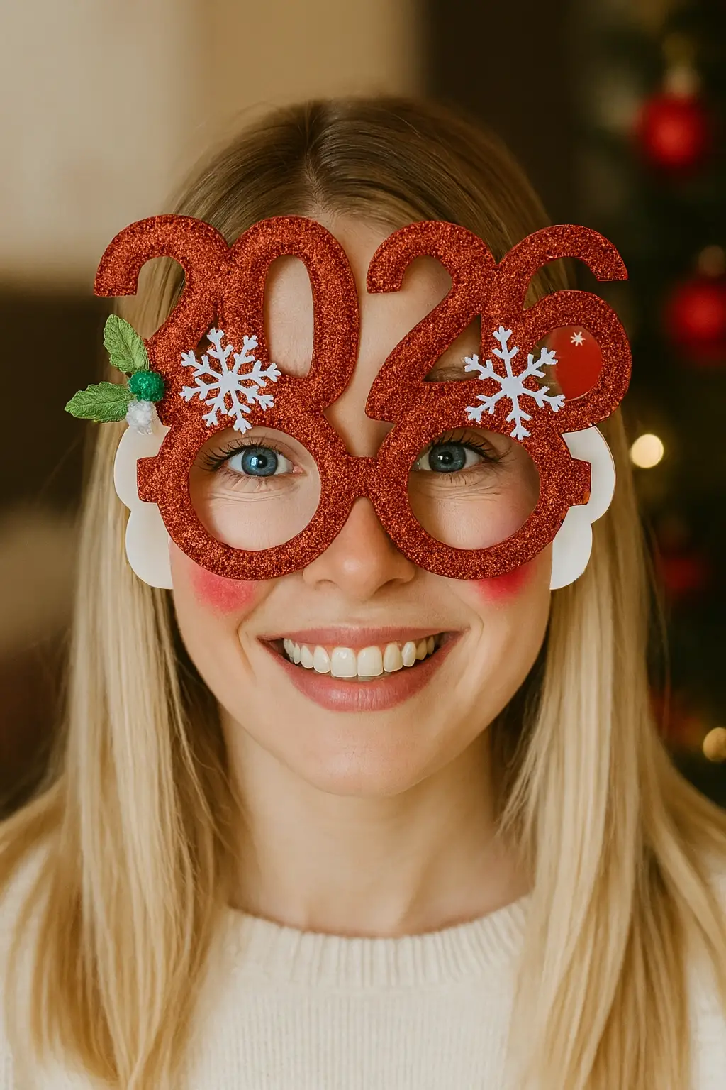 Kırmızı Renk 2026 Yılbaşı Temalı Gözlük