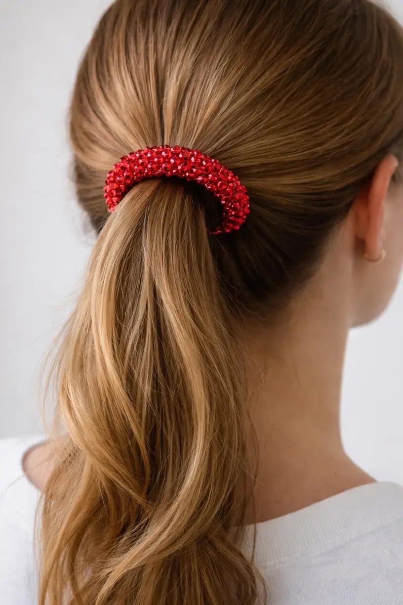 Kırmızı Renk Boncuk Detaylı Lastik Toka