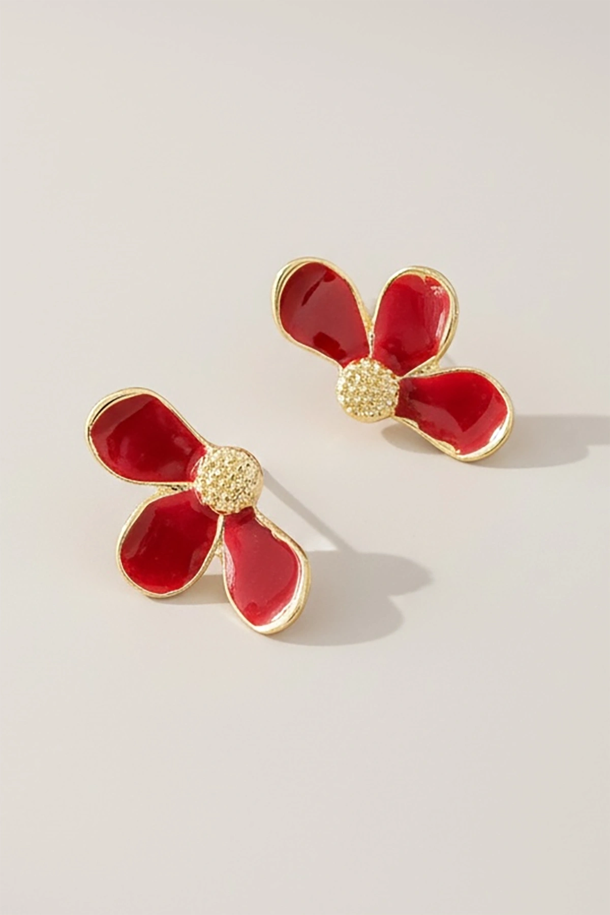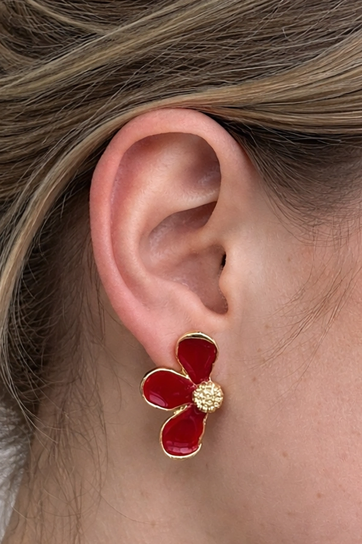 Kırmızı Renk Çiçek Figürlü Küpe (Çift)