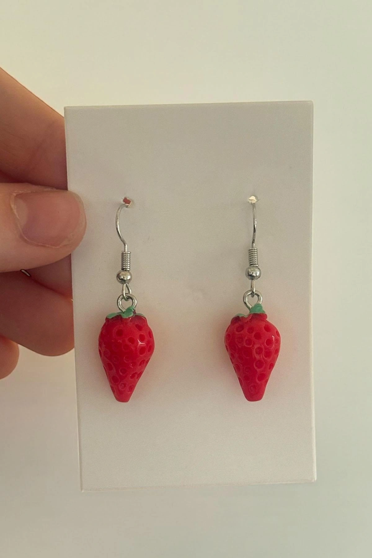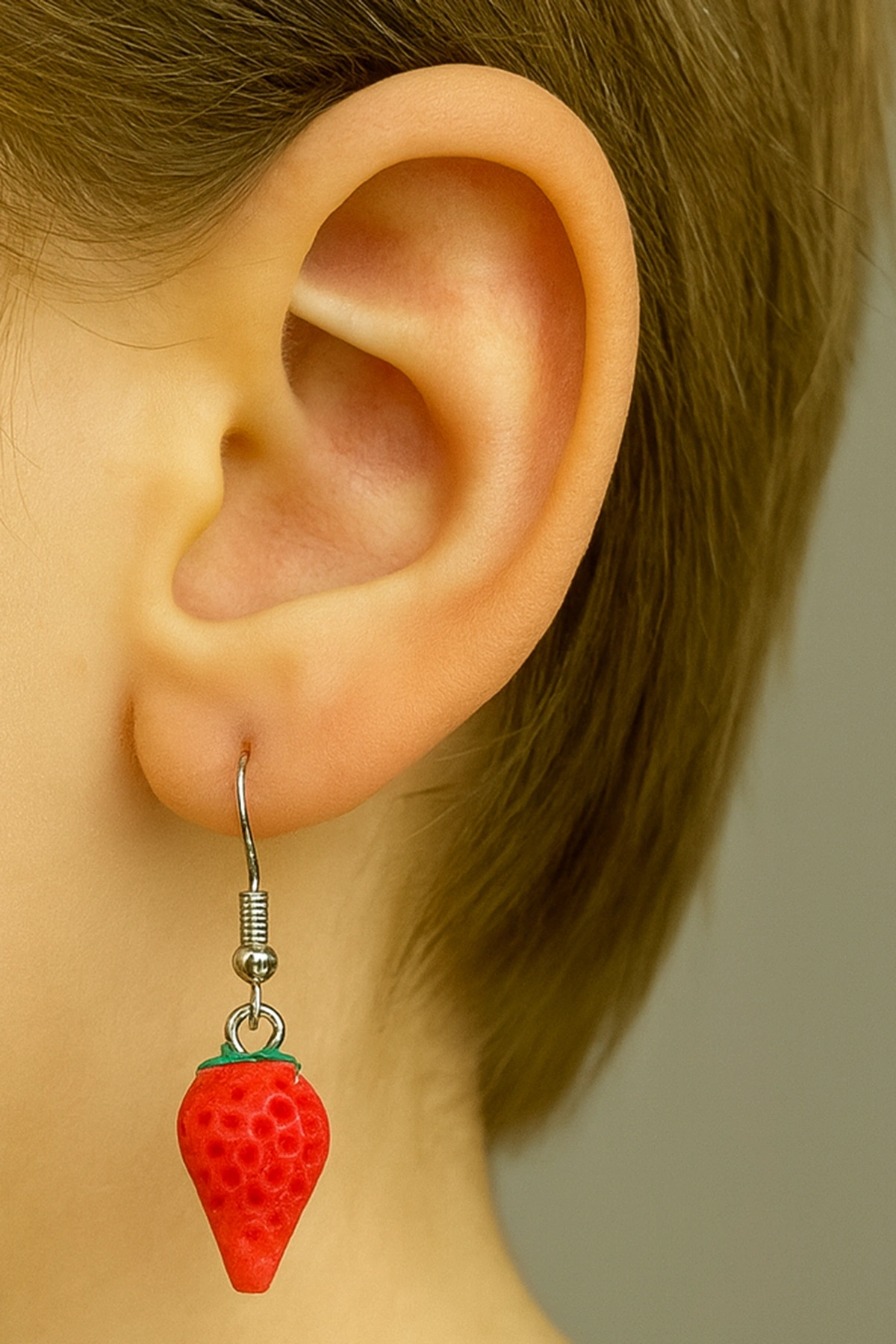 Kırmızı Renk Çilek Figürlü Çocuk Küpe (Çift)