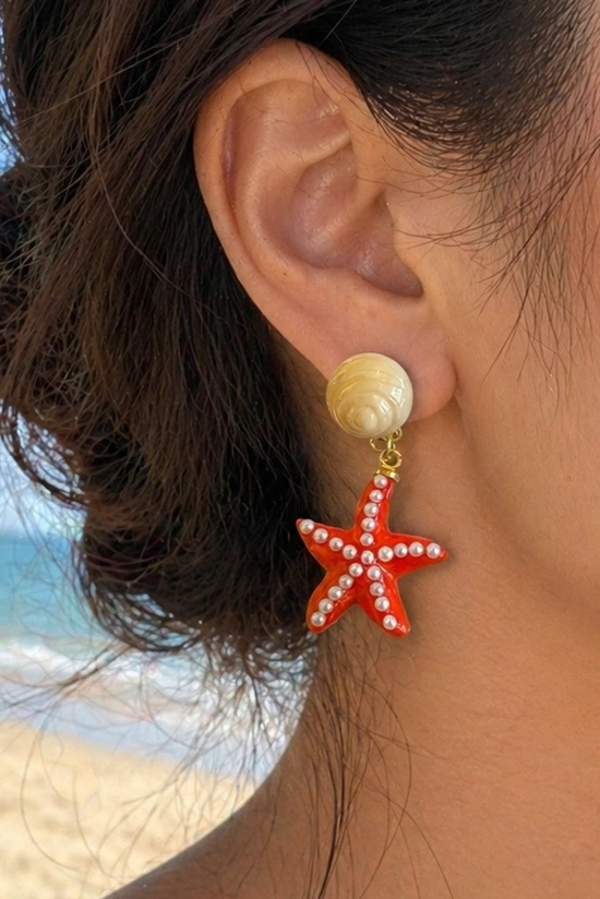Kırmızı Renk Deniz Yıldızı Figürlü Küpe (Çift)