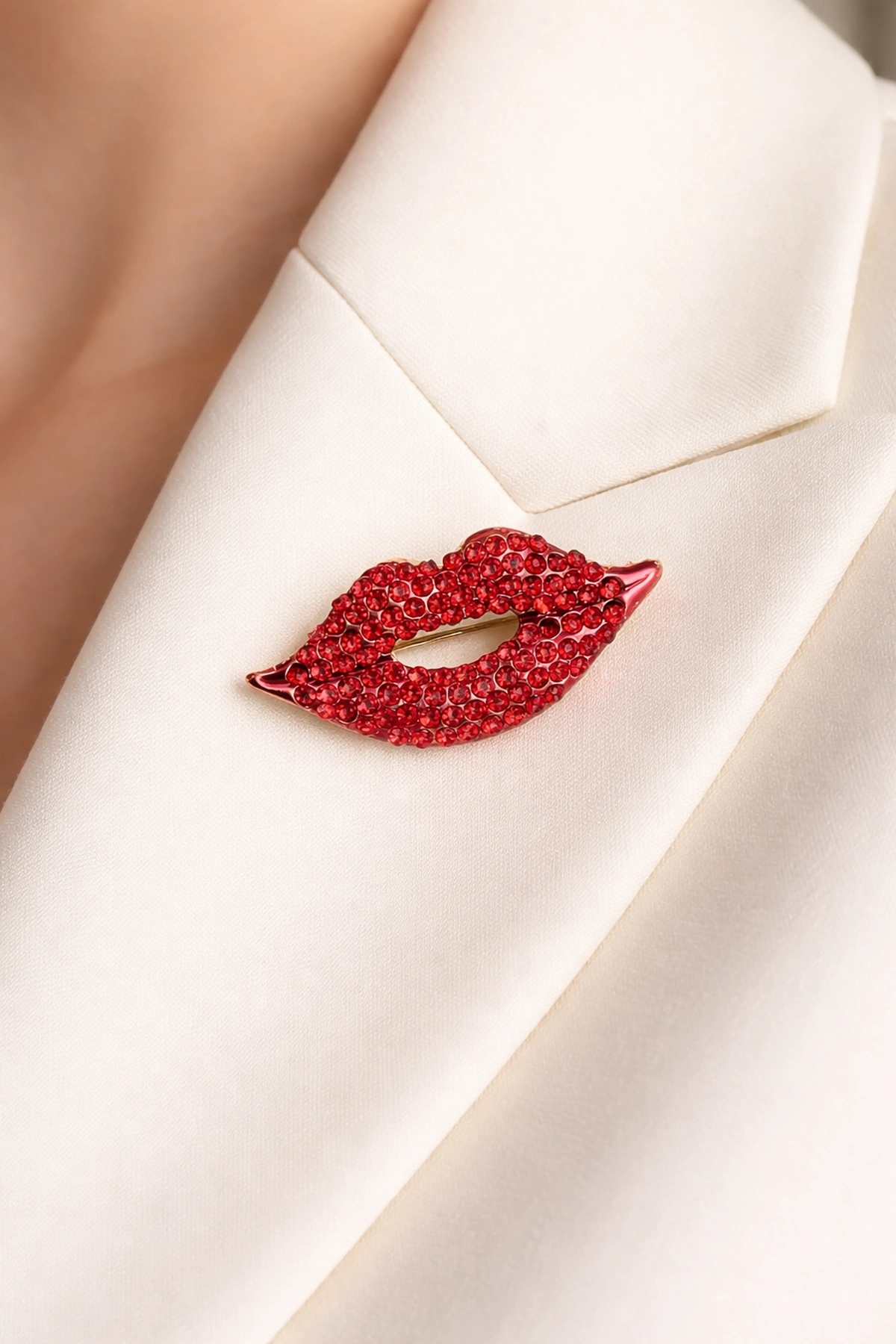 Kırmızı Renk Dudak Figürlü Taşlı Broş