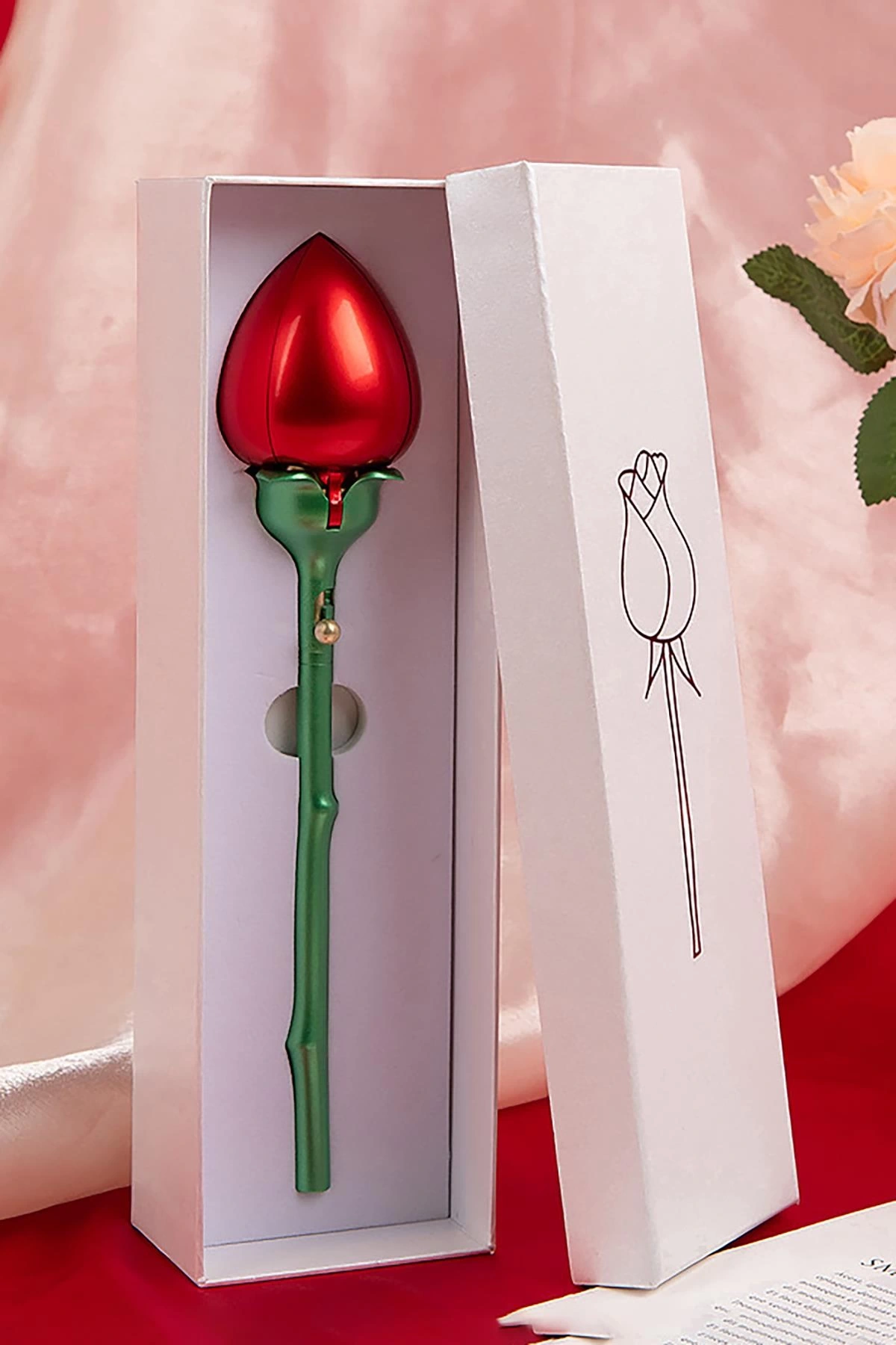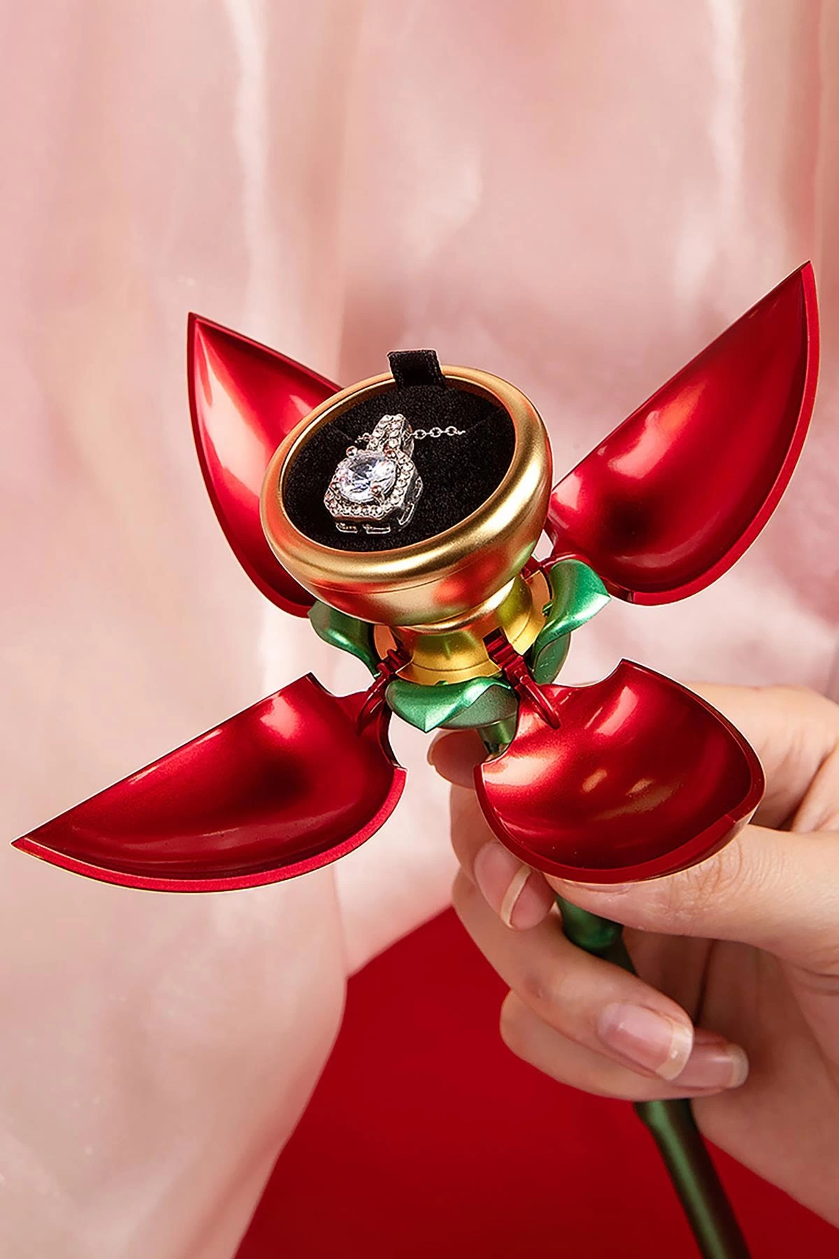 Kırmızı Renk Gül Figürlü Yüzük Kutusu