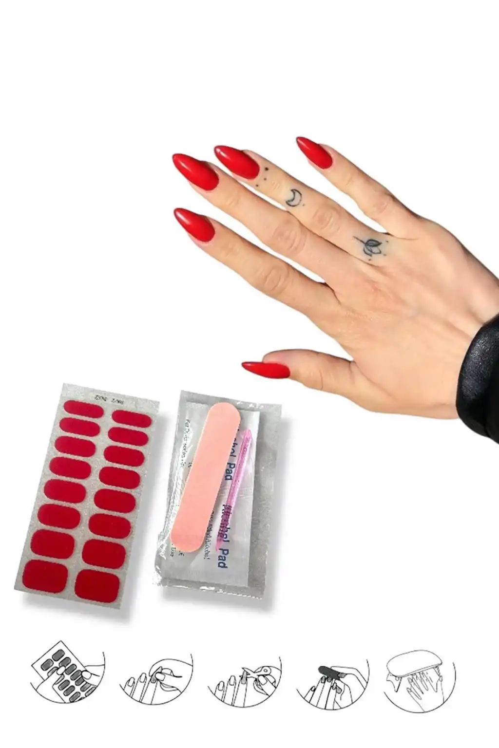4. Tırnak etiketini koparıp tırnak yüzeyine, kütikülün yakınına yerleştirin. kırışıklıkları ve kabarcıkları düzeltin.