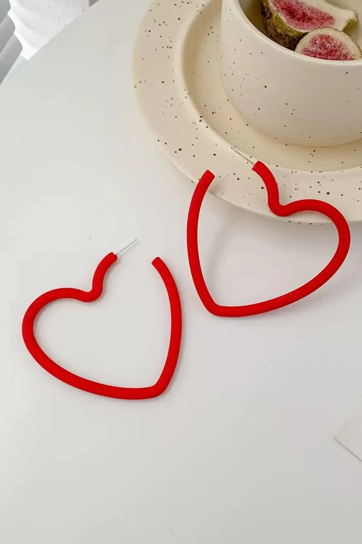 Kırmızı Renk Kalp Figürlü Küpe (Çift)
