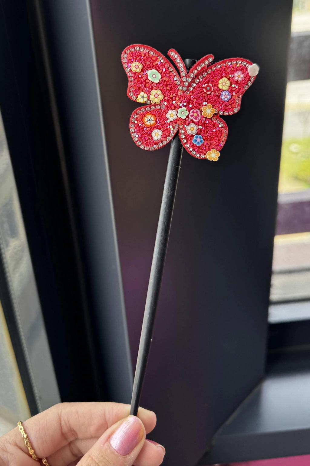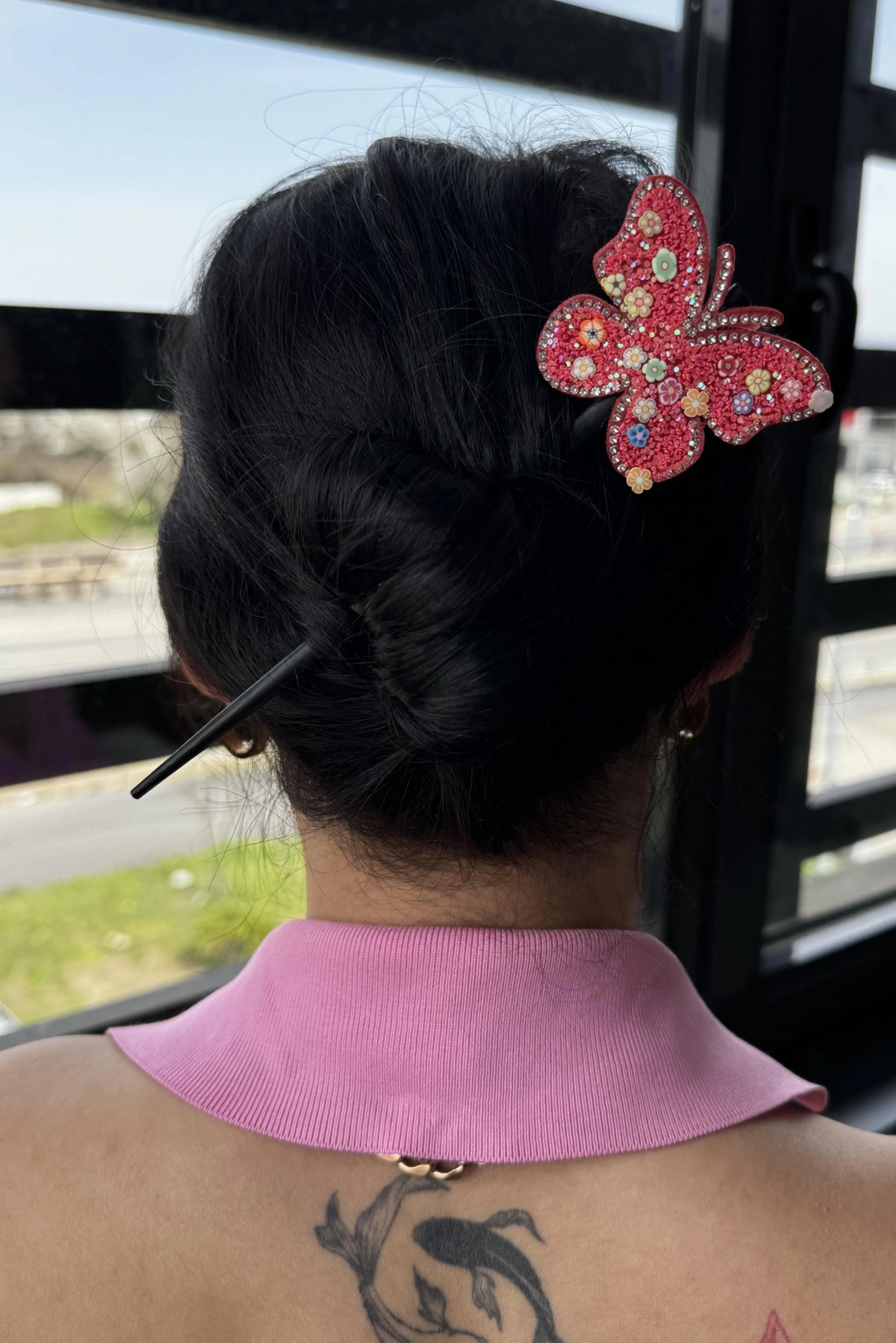 Kırmızı Renk Kelebek Figürlü Topuz Tokası/Topuz Kalemi