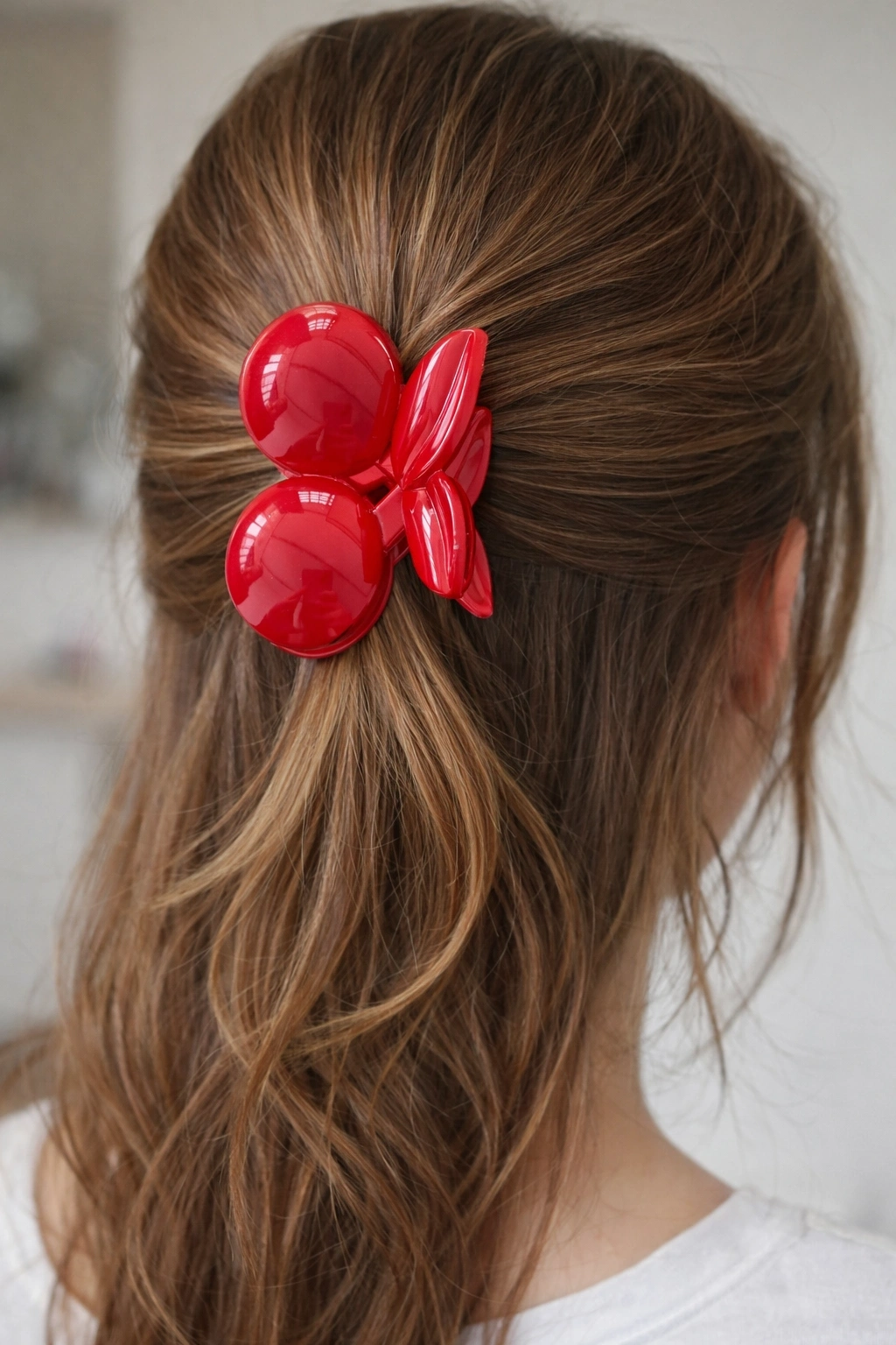 Kırmızı Renk Kiraz Figürlü Mandal Toka