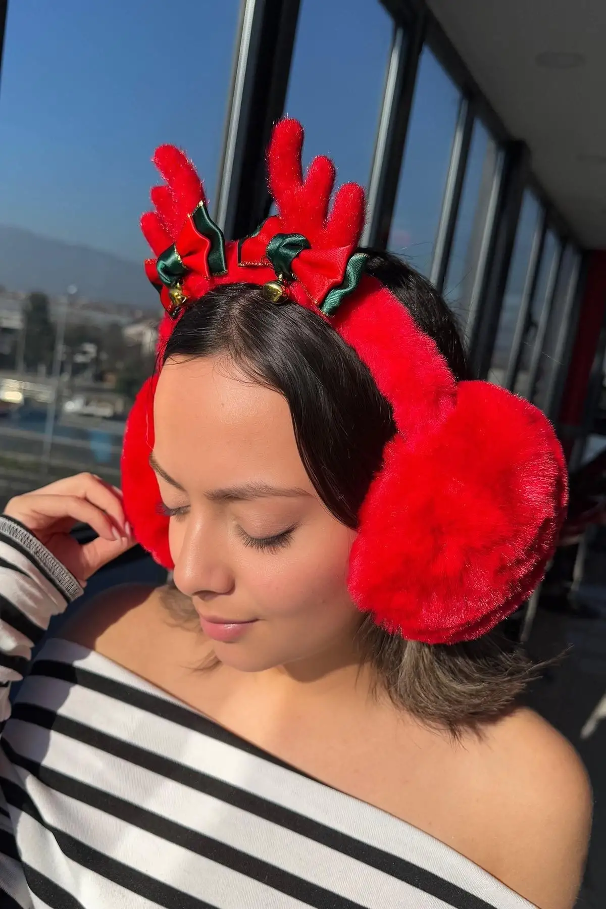 Kırmızı Renk Kurdele Figürlü Çan Detaylı Peluş Kulaklık