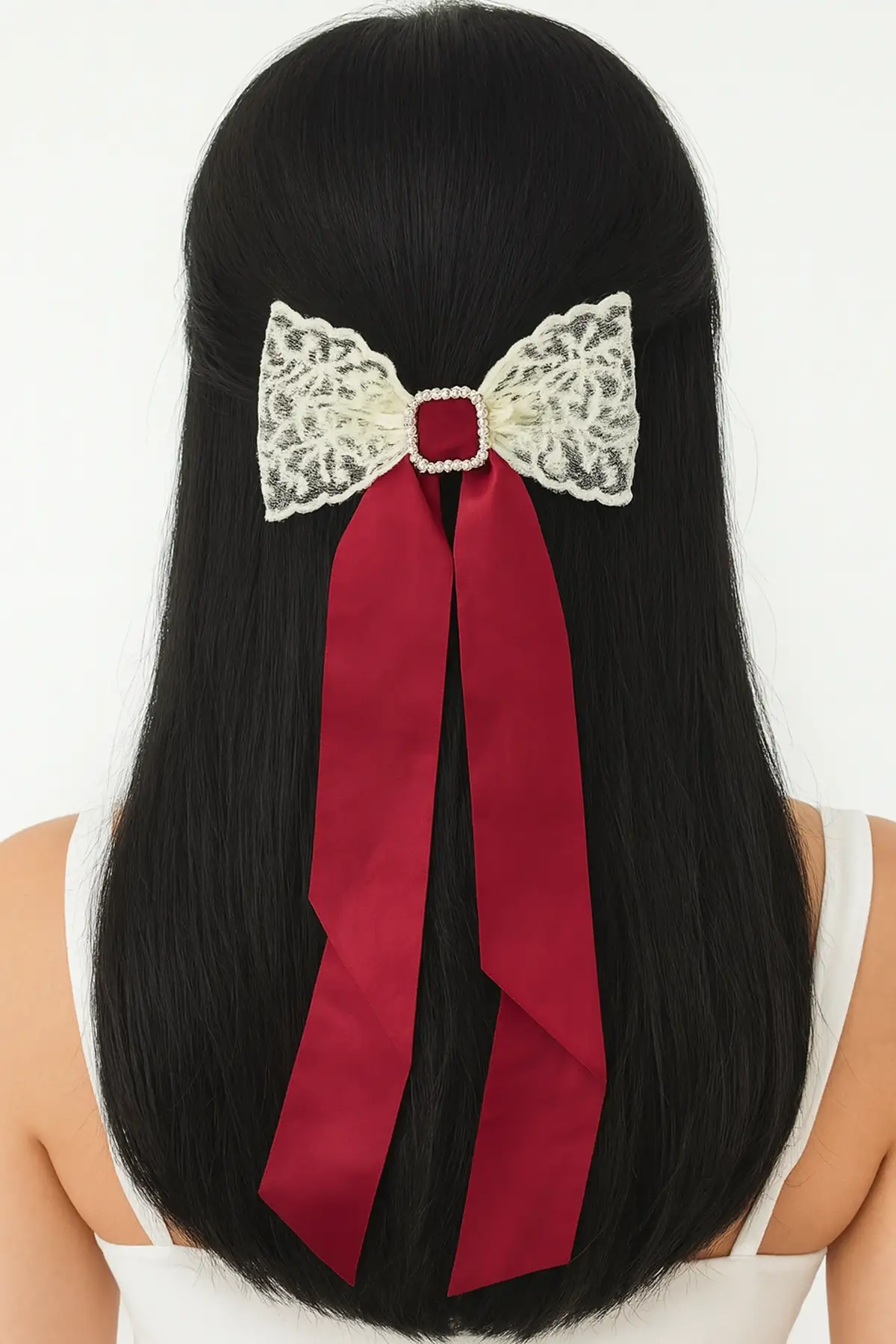 Bordo Renk İnci Ve Taş Detaylı Otomat Toka