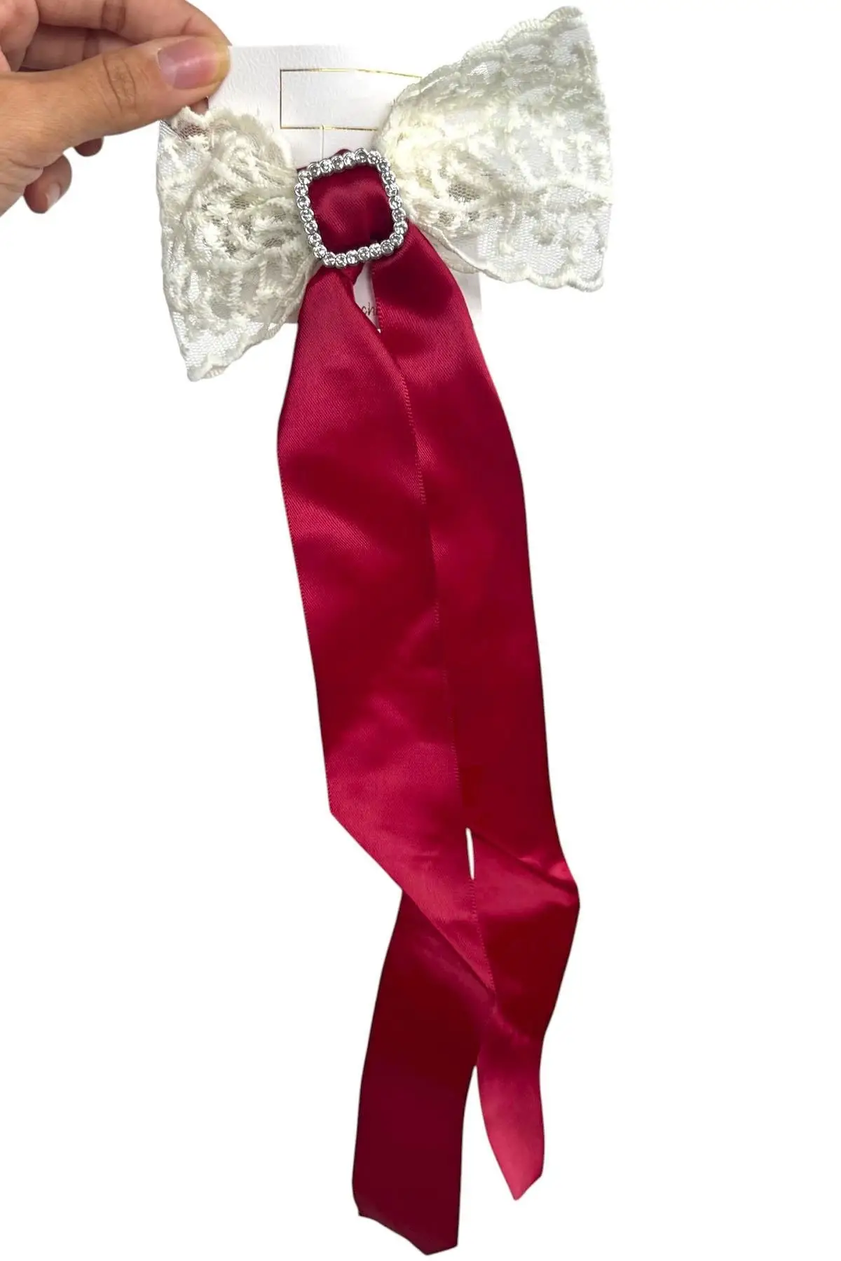 Kırmızı Renk Kurdele Figürlü Taş Detaylı Otomat Toka