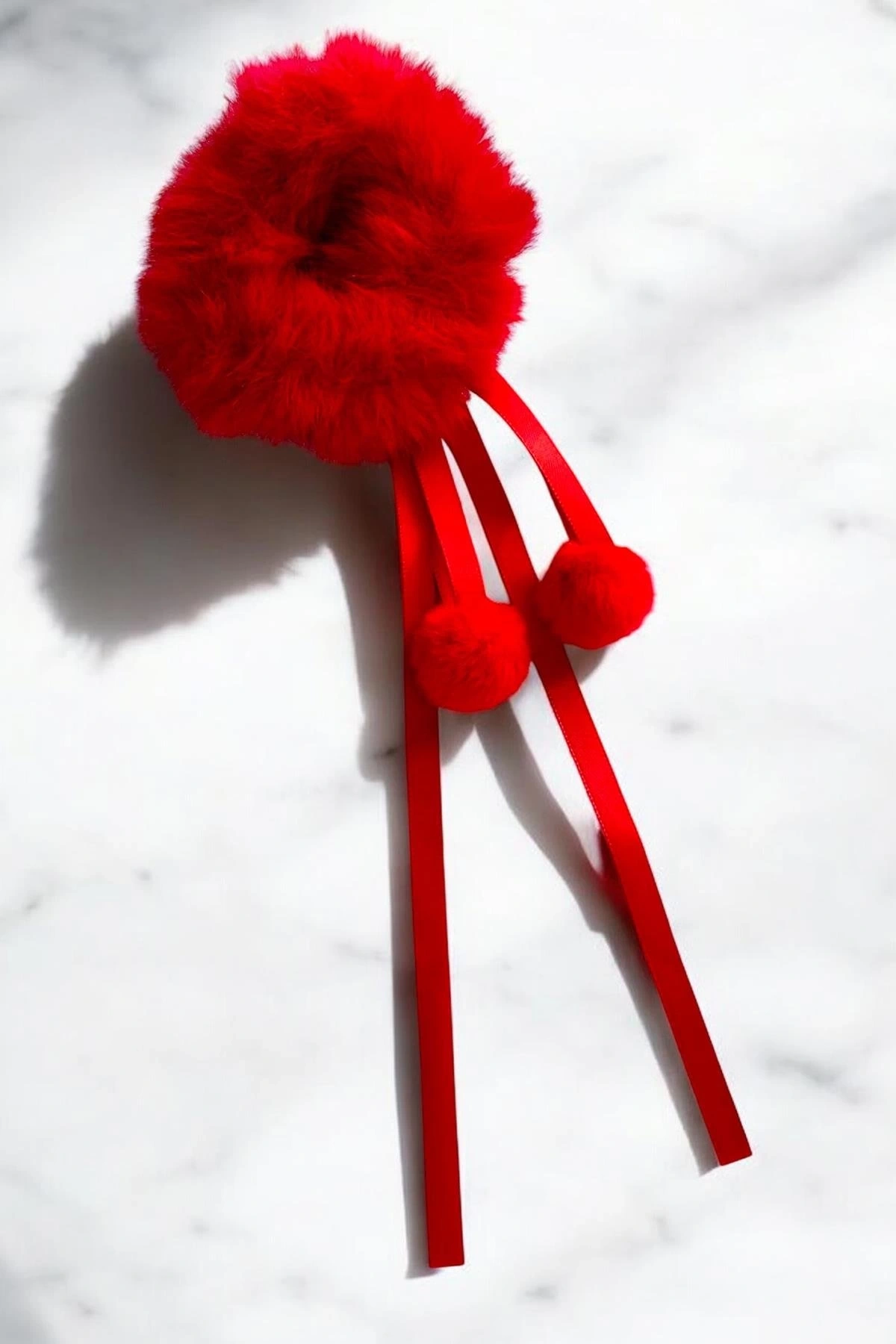 Kırmızı Renk Ponpon Detaylı Peluş Simit Toka