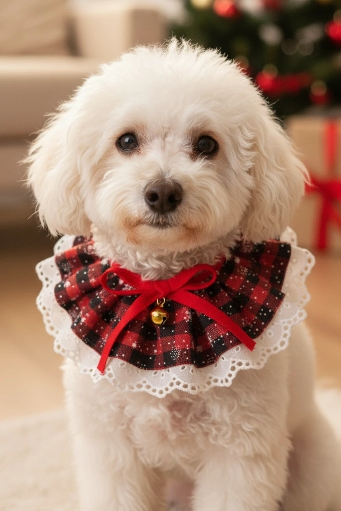 Minik dostunuza şıklık katacak bu kırmızı kareli fırfırlı köpek tasmasıyla her an fotoğraflık!