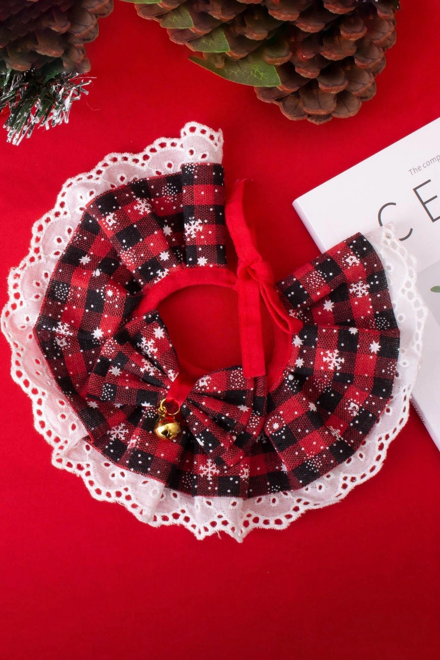 ? Kırmızı Kareli Fırfırlı Köpek Tasması ?