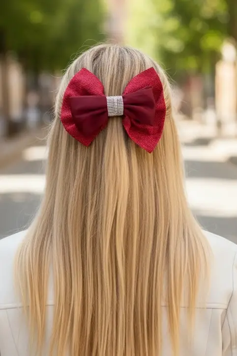 Kırmızı Renk Taş Detaylı Kurdele Otomat Toka