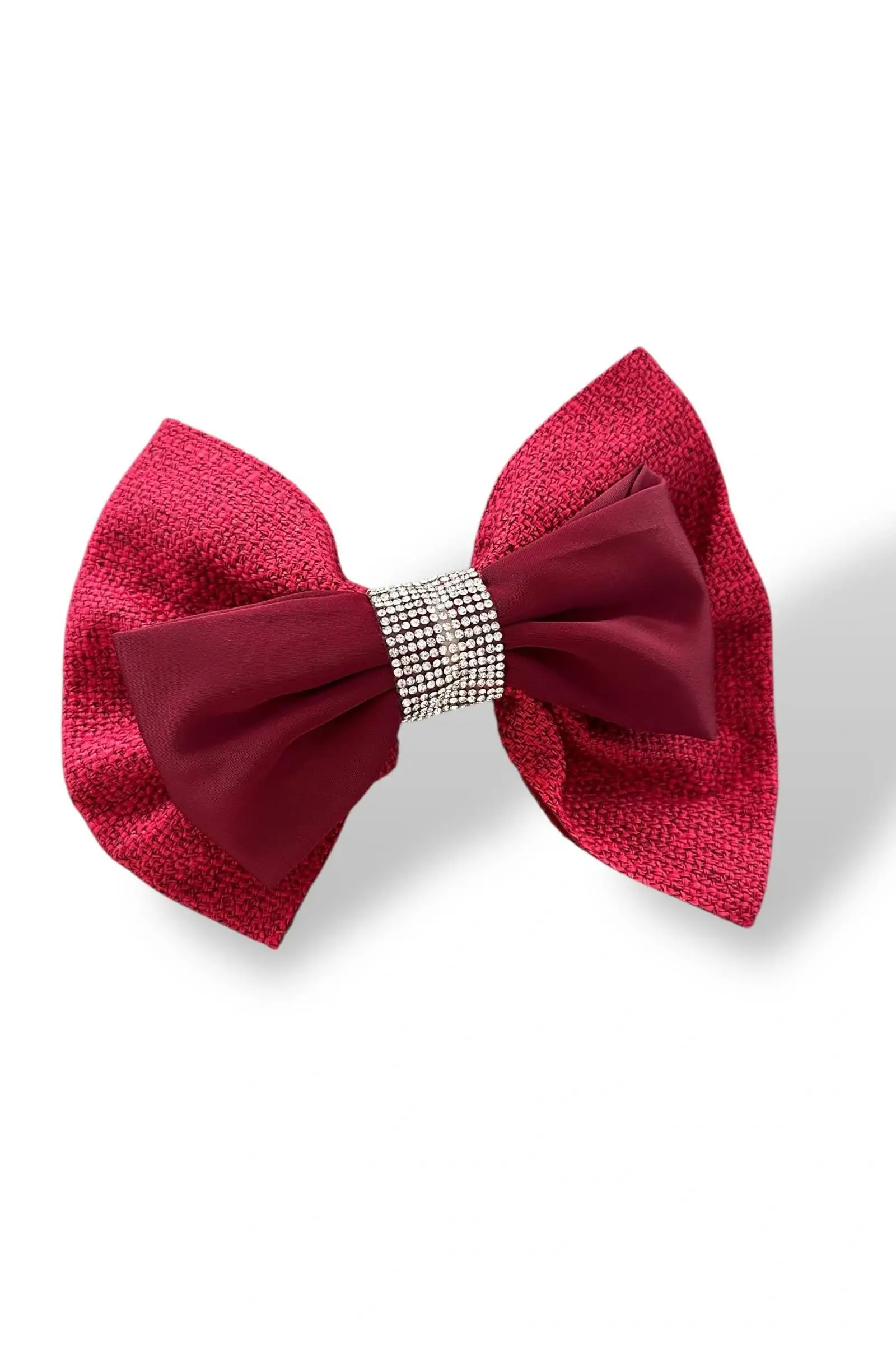 Bordo Renk İnci Ve Taş Detaylı Otomat Toka