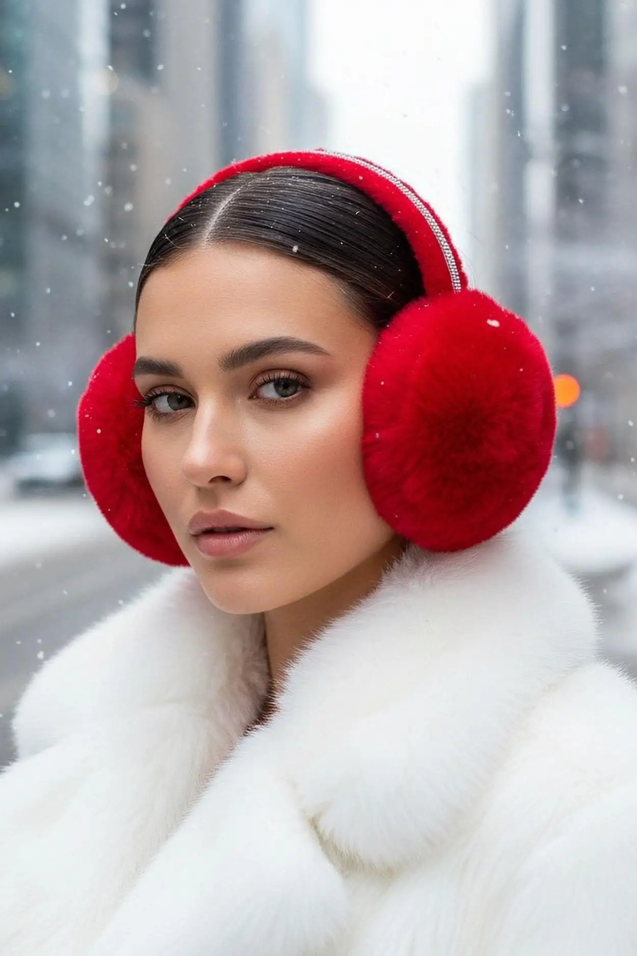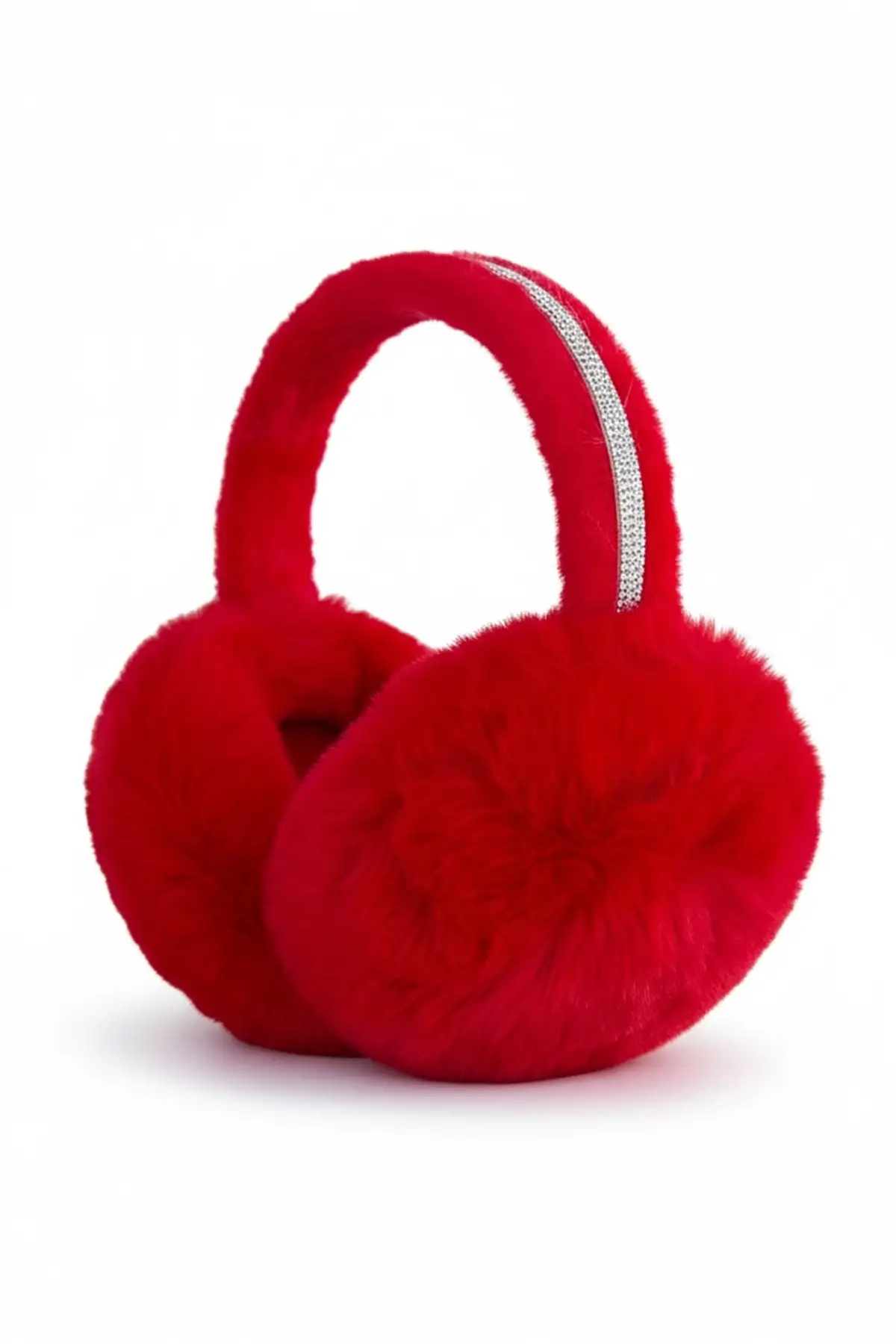Kırmızı Renk Taş Detaylı Peluş Kulaklık
