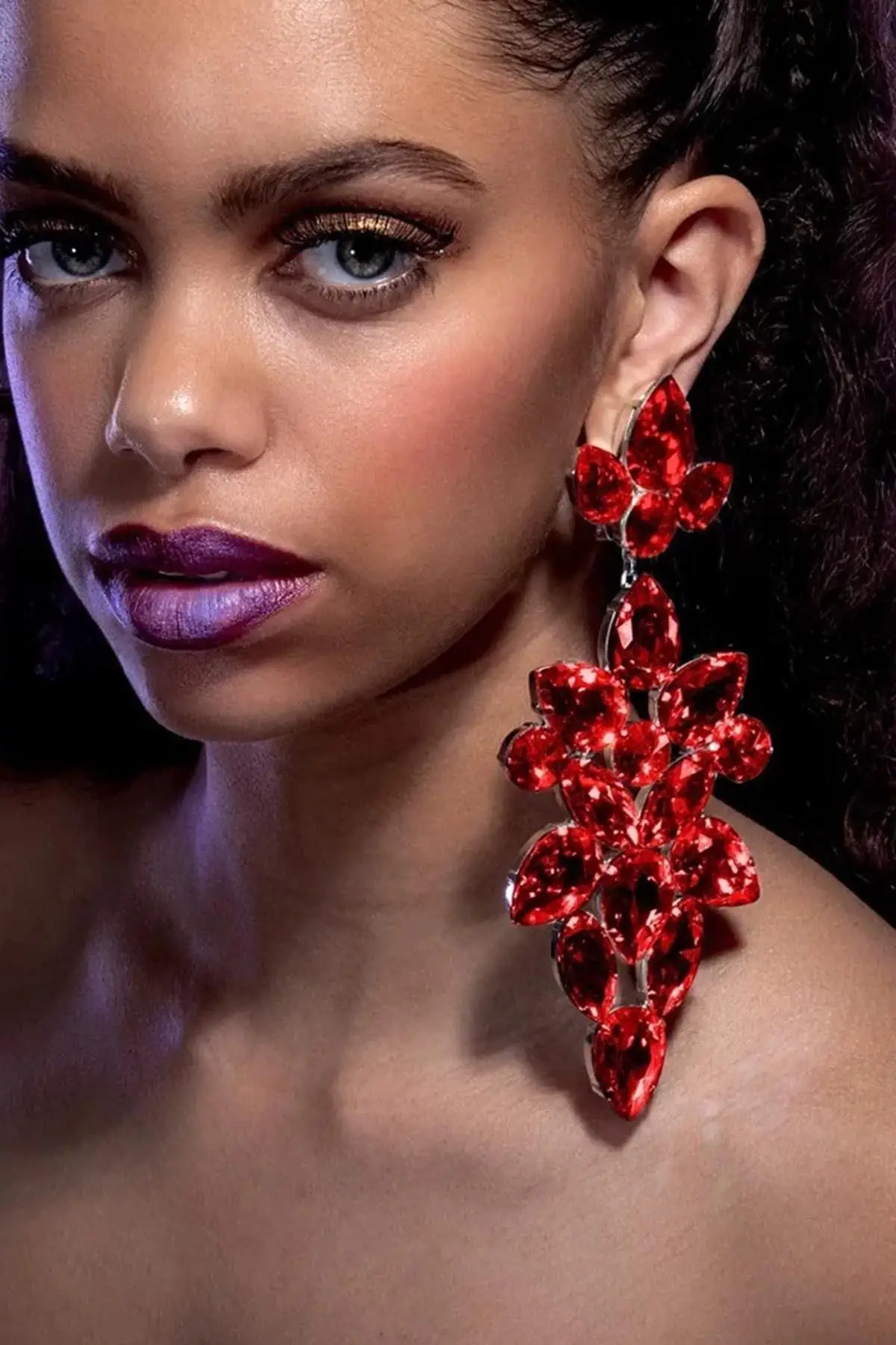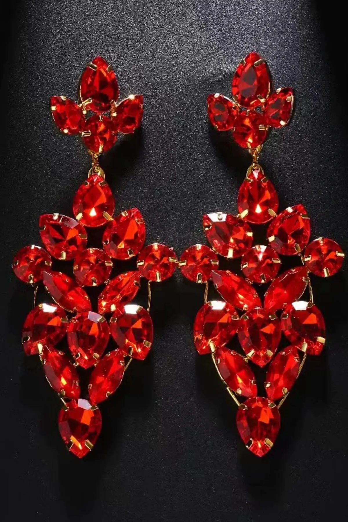 Kırmızı Renk Taşlı Abiye Küpe (Çift) Kına/Gelin Küpe