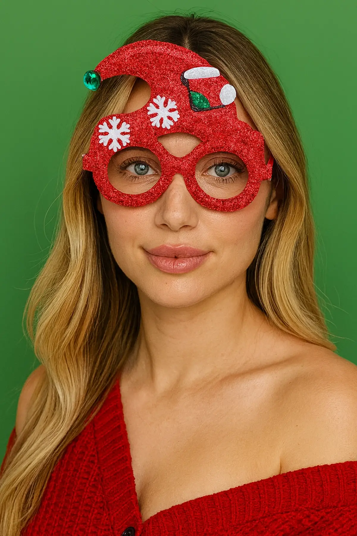Kırmızı Renk Yılbaşı Temalı Gözlük