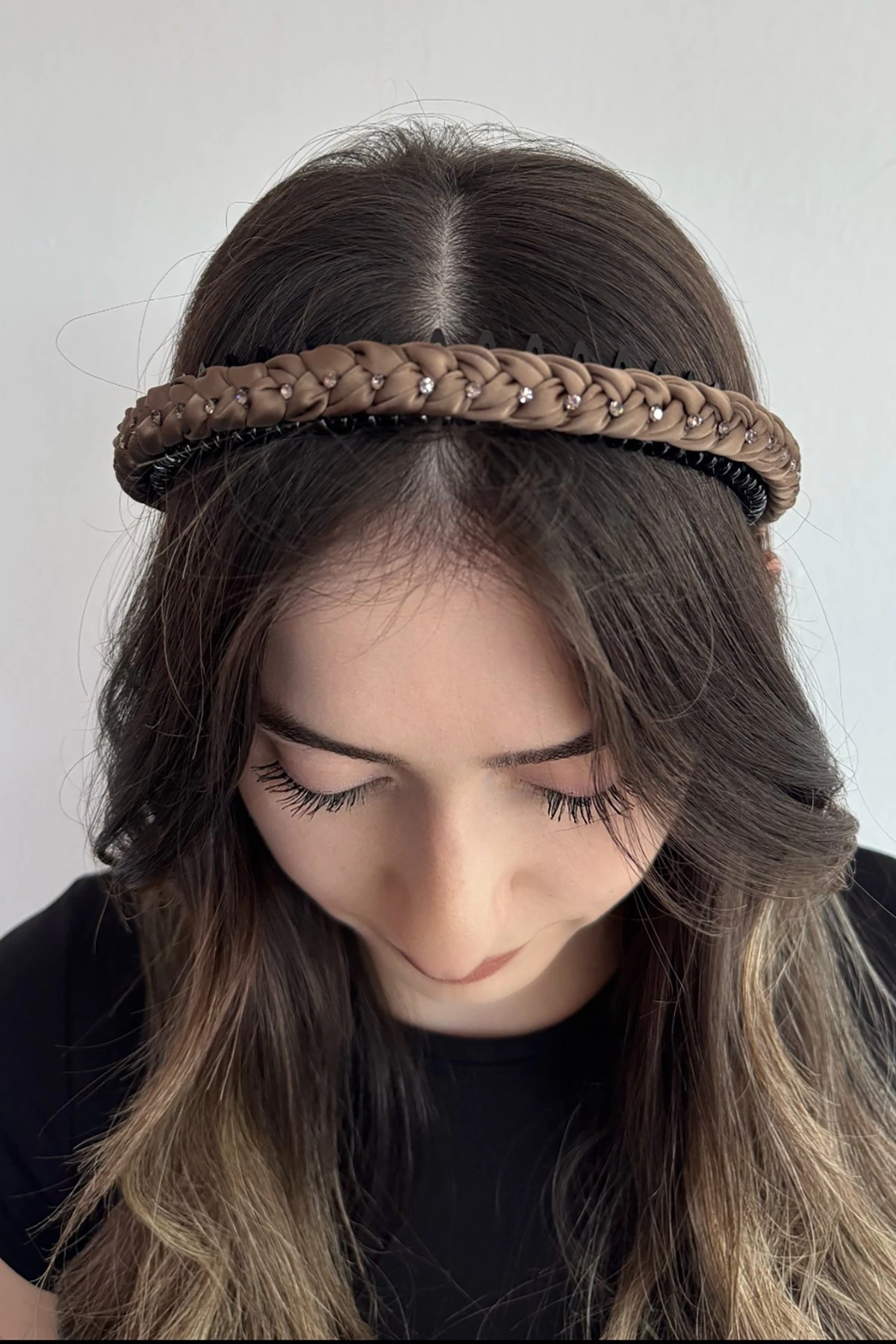 Koyu Kahve Renk Taş Detaylı Tarak Taç