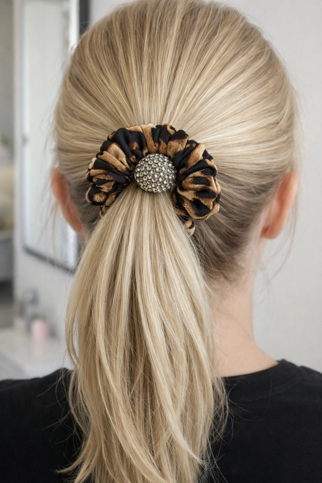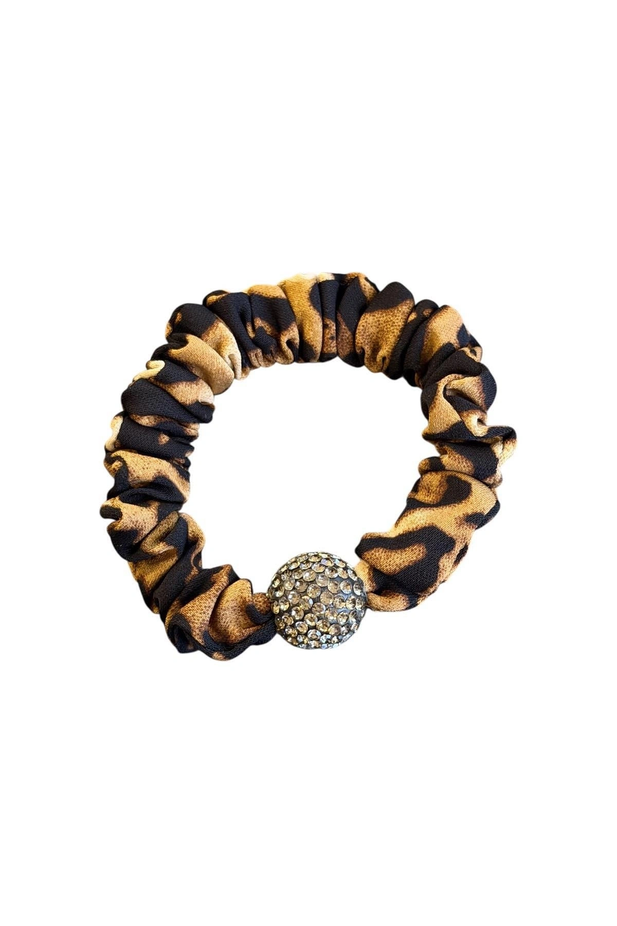 Koyu Kahverengi Leopar Detaylı Taşlı Lastik Toka