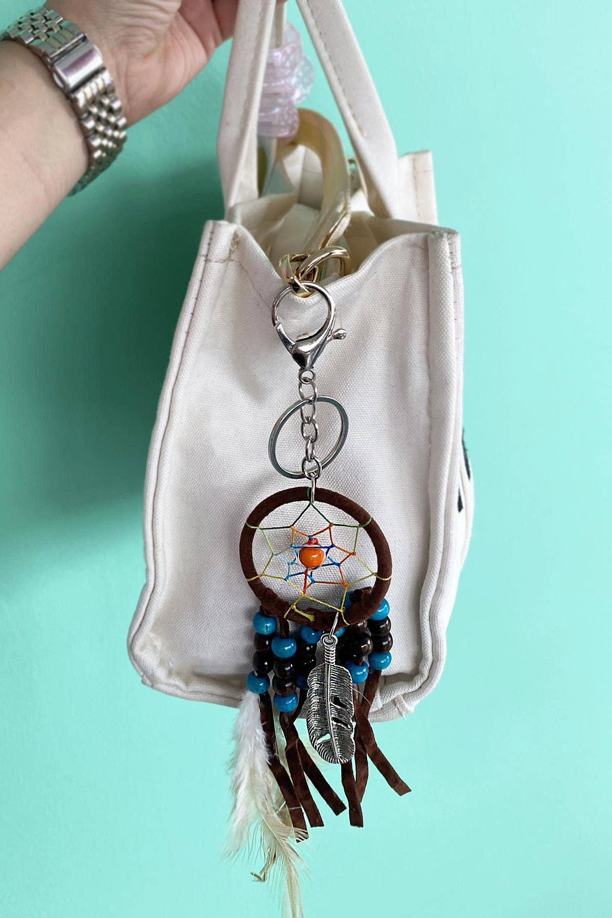 Koyu Kahverengi Renk Boncuklu Rüya Kapanı Detaylı Anahtarlık