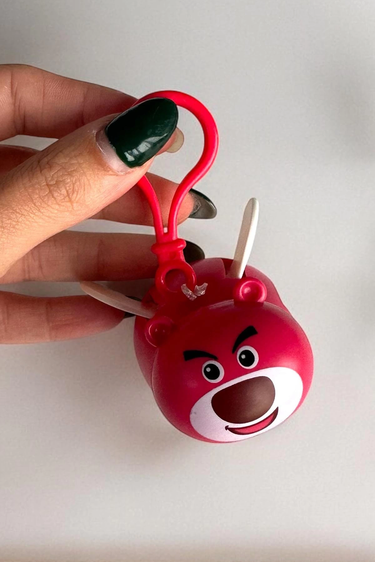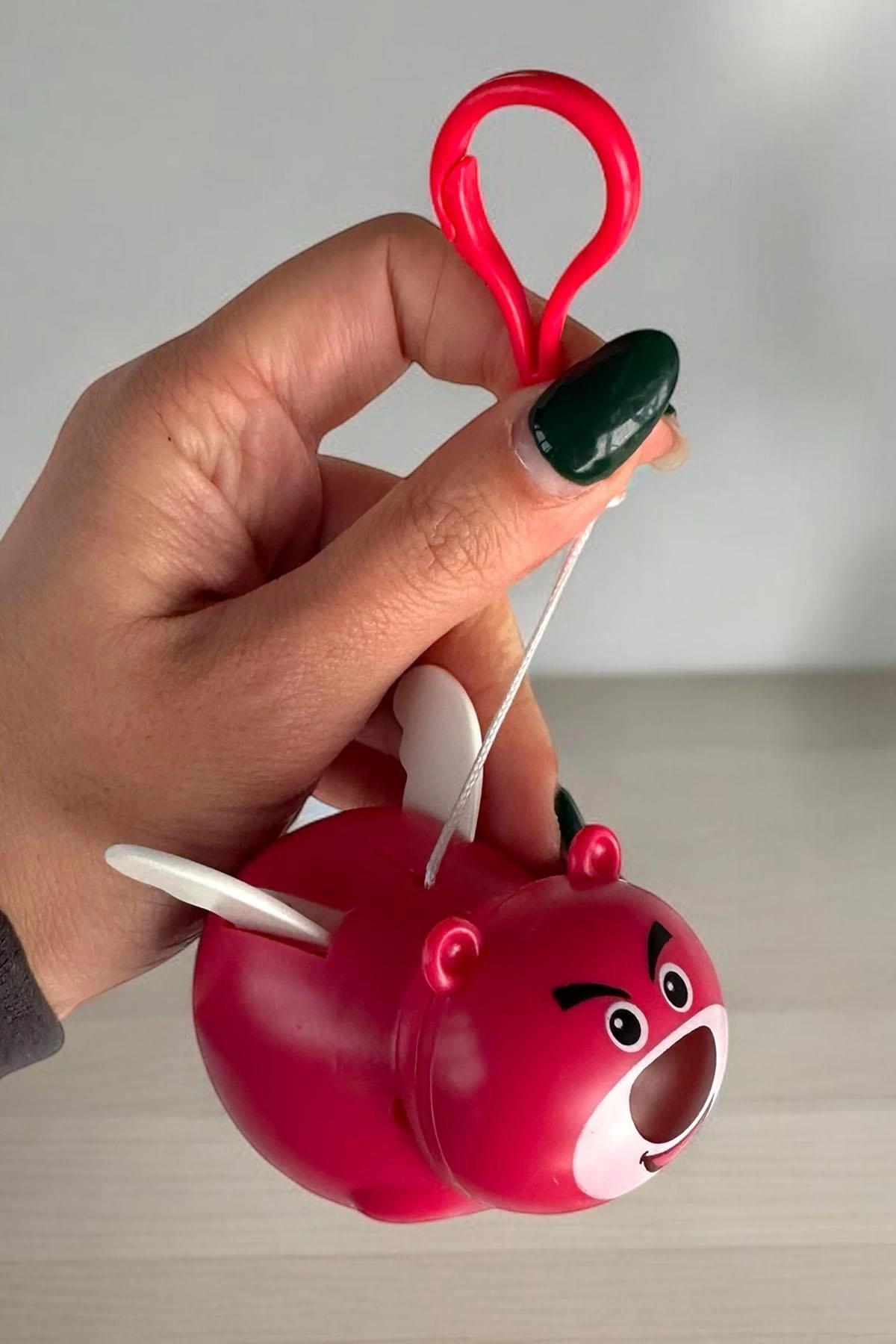 Koyu Pembe Renk Kanatları Oynayan Ayı Figürlü Anahtarlık