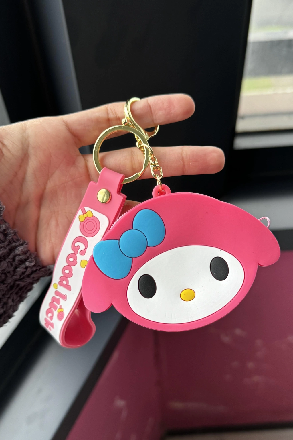 Koyu Pembe Renk Kedi Figürlü Anahtarlık/Cüzdan