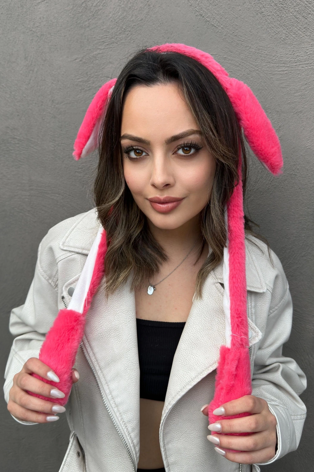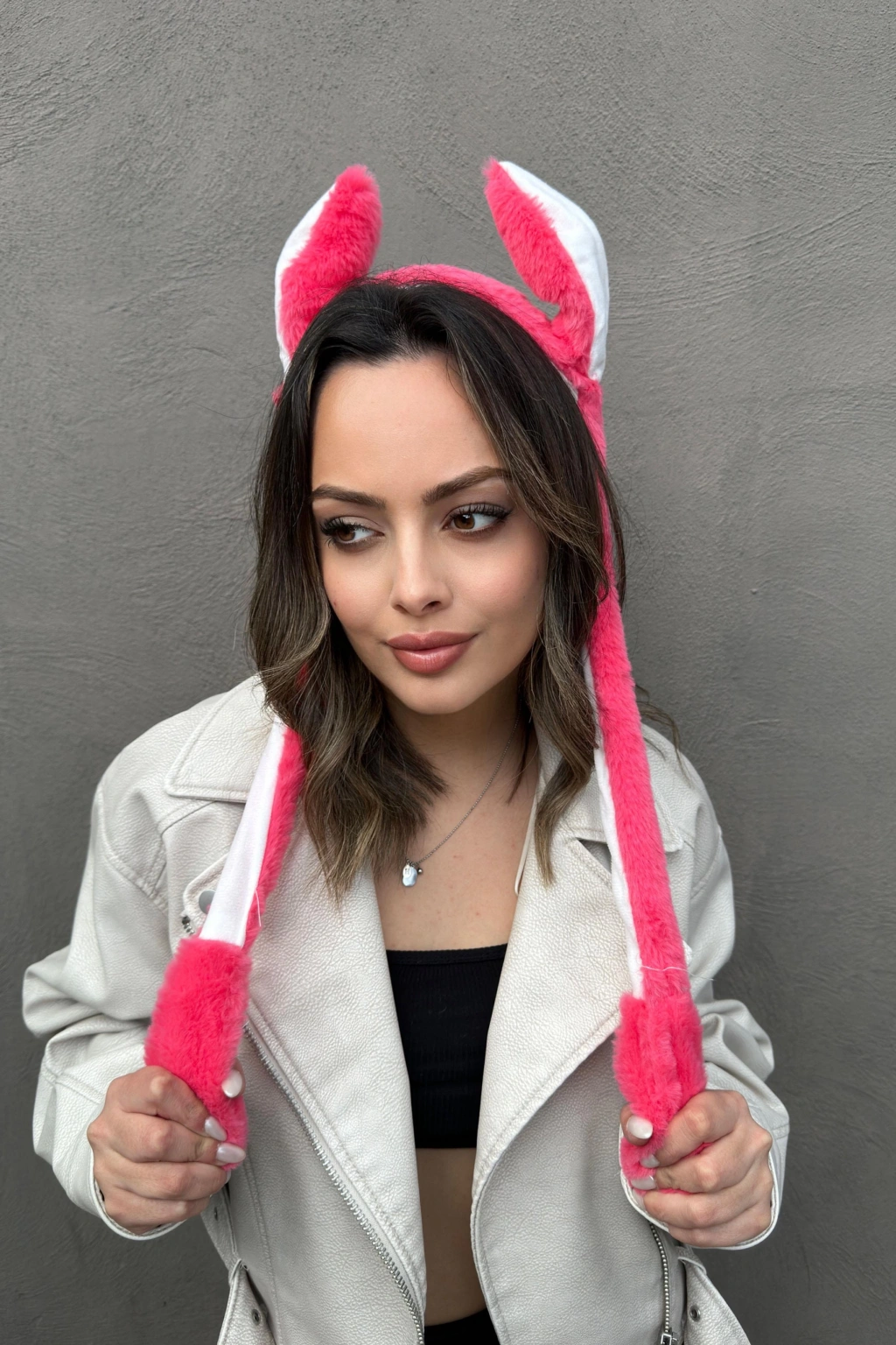 Koyu Pembe Renk Kulakları Oynayan Peluş Taç