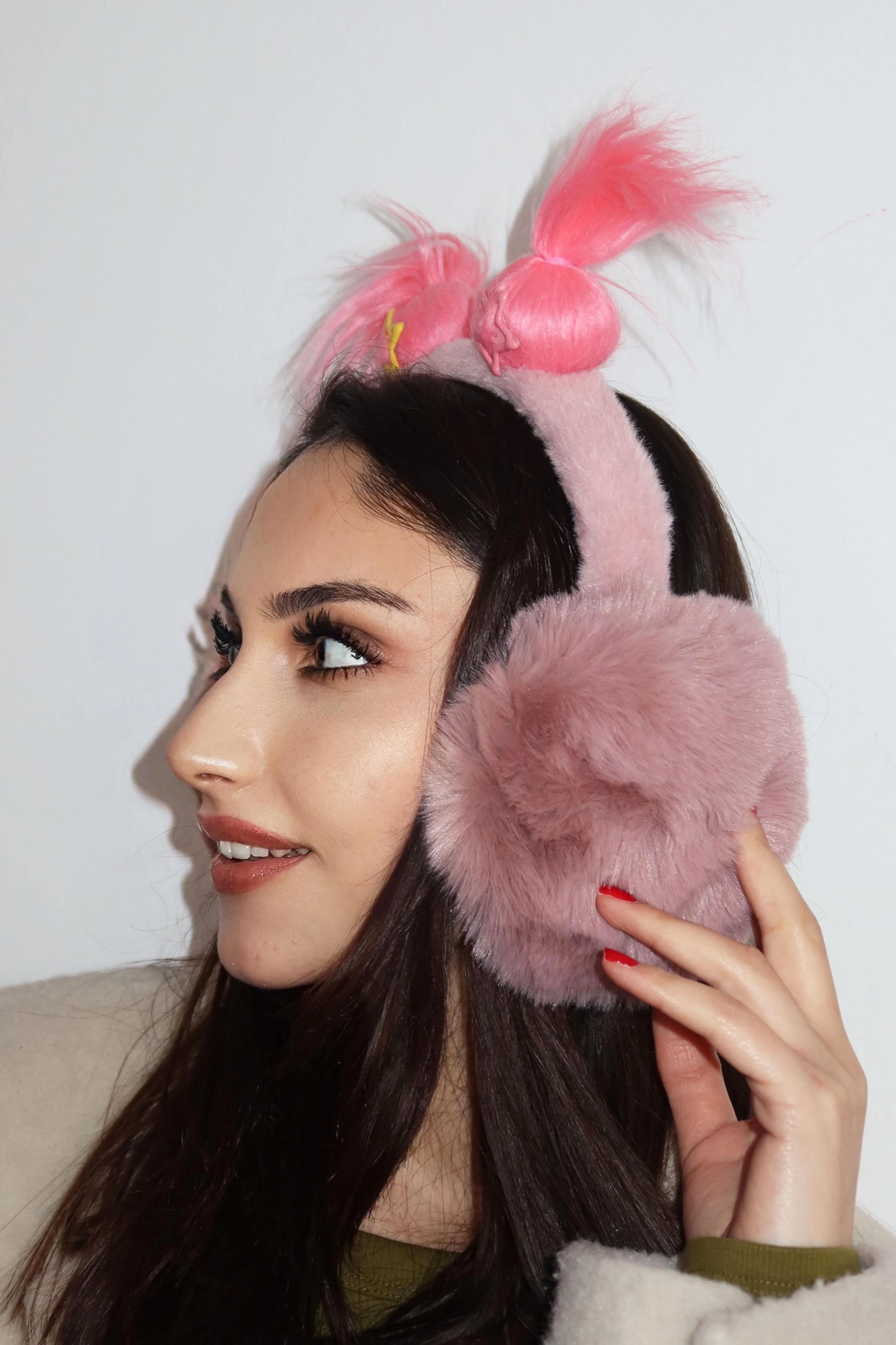Koyu Pembe Renk Saç Detaylı Peluş Kulaklık