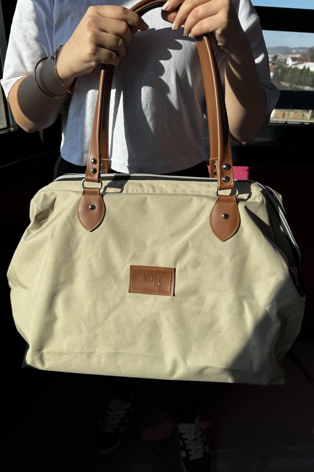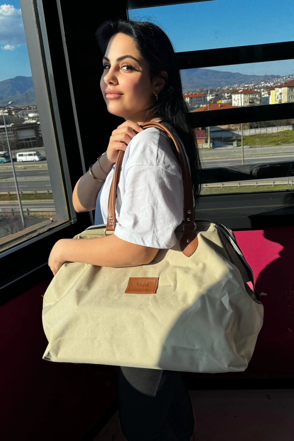 Krem Renk Büyük Boy El Çantası/ Seyahat Çantası