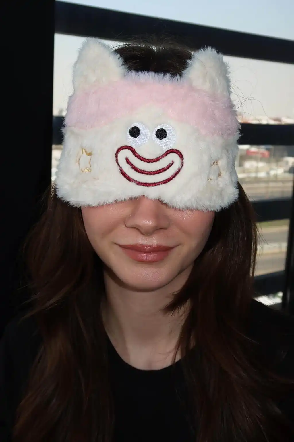 Pembe Renk Kedi Figürlü Peluş Uyku Bandı