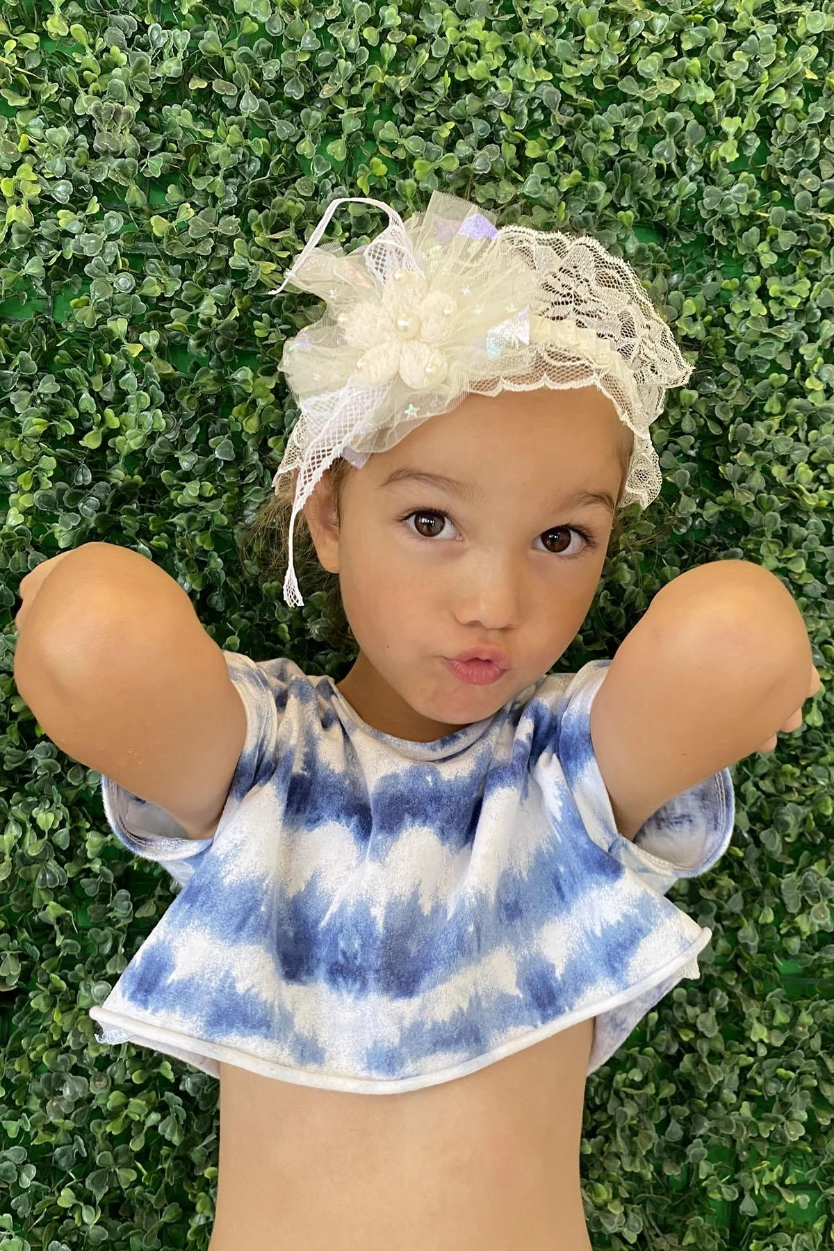 Krem Renk Çiçek Figürlü İnci Detaylı Saç Bandı