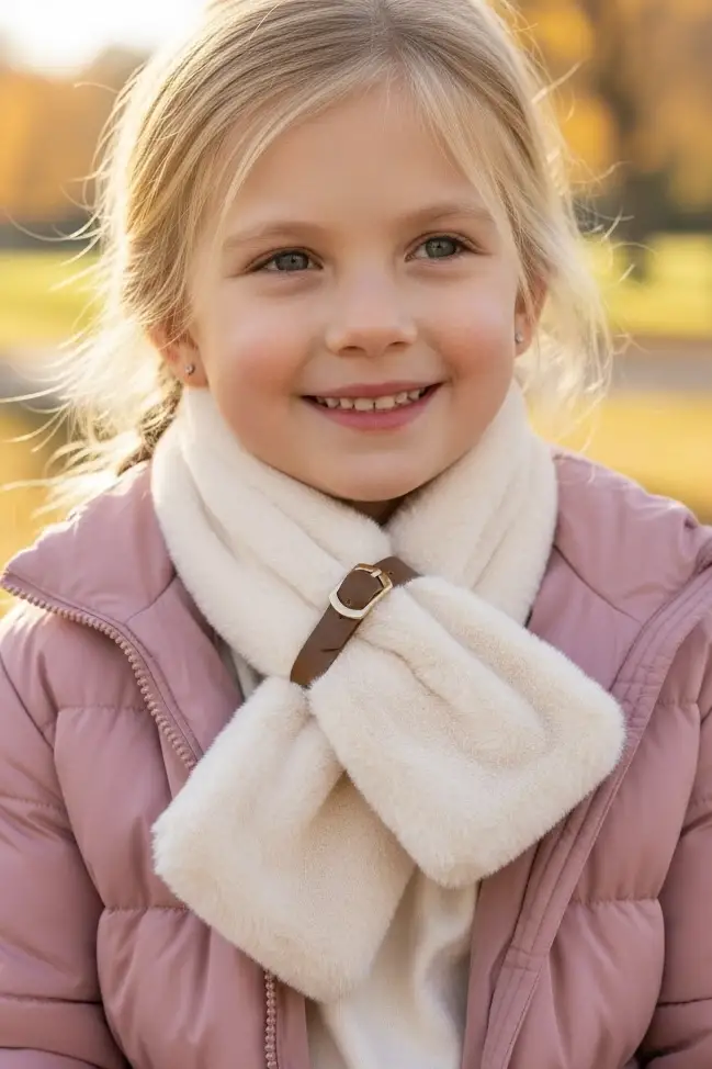 Krem Ve Gri Renk Çocuk Peluş Atkı