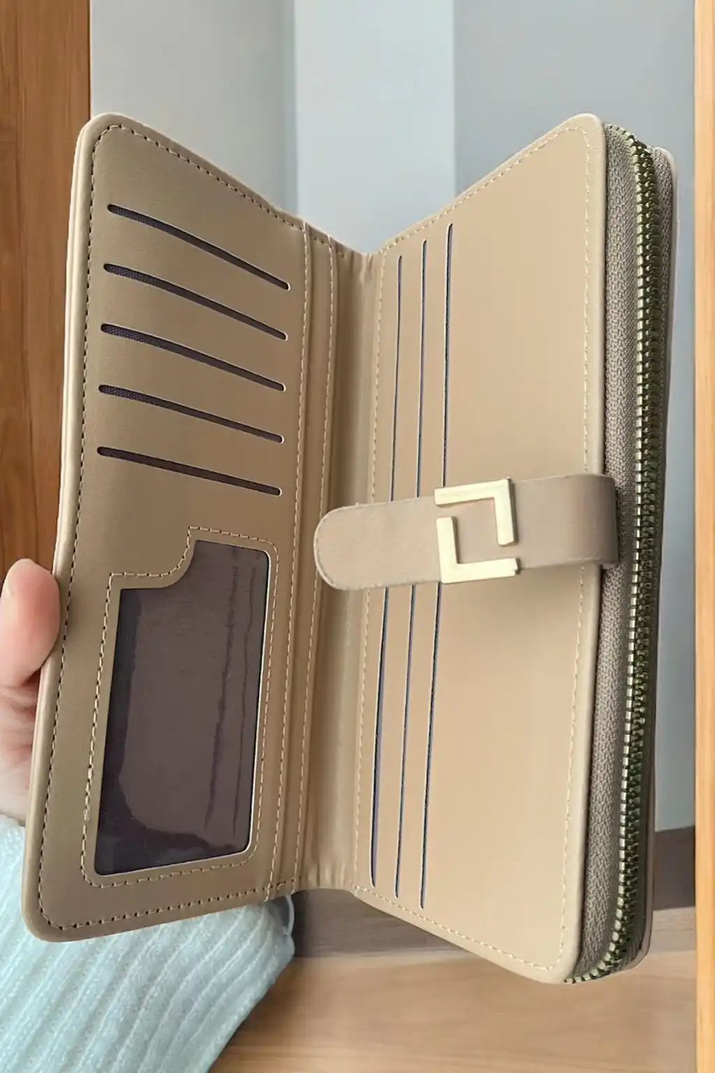 Krem Renk Deri Kadın Cüzdan