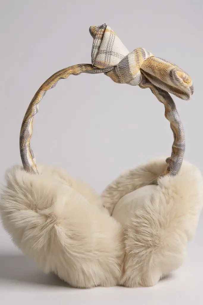 Krem Renk Ekose Desenli Peluş Kulaklık
