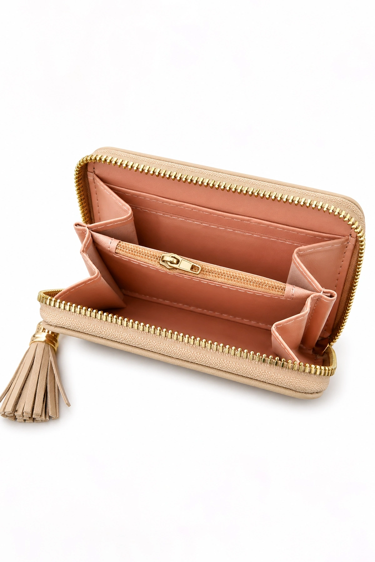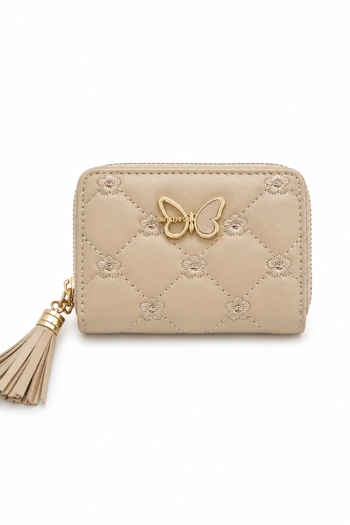 Krem Renk Kelebek Figürlü Deri Kadın Cüzdan